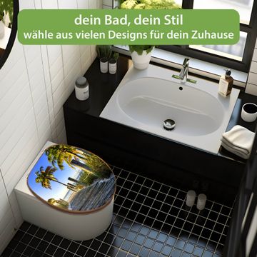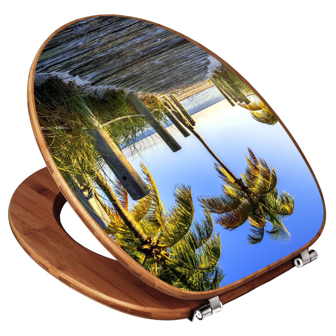 Mit dem banjado Toilettensitz in Bambus verbinden Sie Design und Funktionalität. Sie erhalten den WC-Sitz mit bewährt schwerer Holz Qualität und Universal Scharnieren. Das Motiv Motiv Weg zum Strand besteht aus einer schutzlaminierten Motivfolie, die durch das Schutzlaminat zusätzlich vor Kratzern schützt. Durch diesen Motivdruck wird der WC-Sitz zu einem Blickfang in Ihrem Bad.