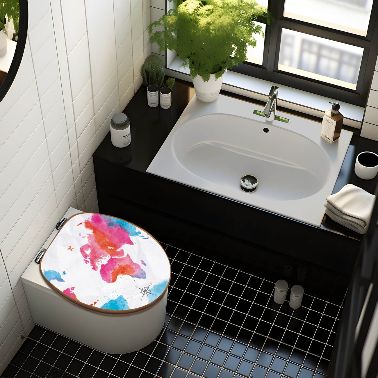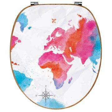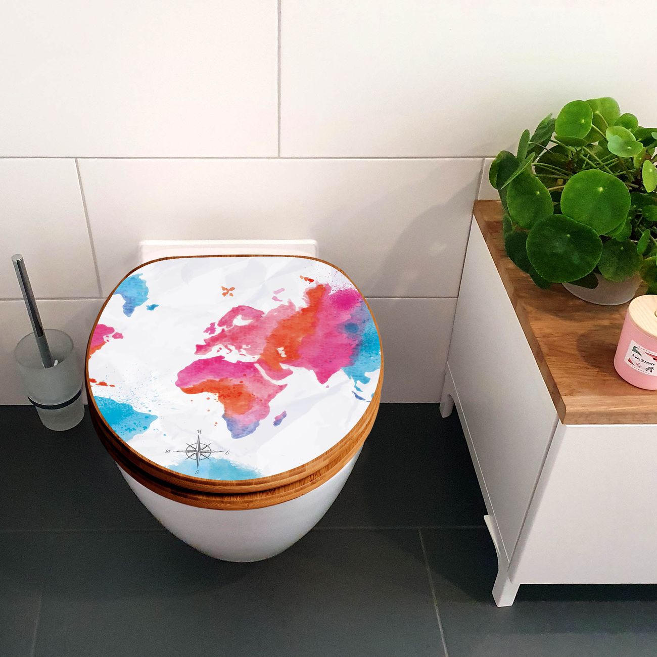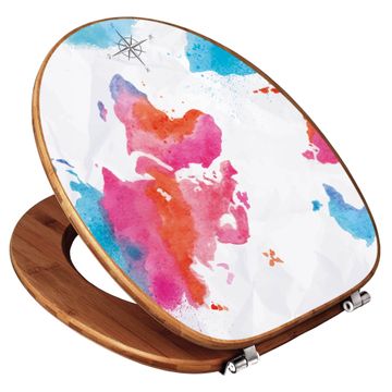 Design WC-Sitz Bambus Holz Motiv Weltkarte pastell