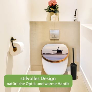 Design WC-Sitz Bambus Holz Motiv Windmühle im Winter