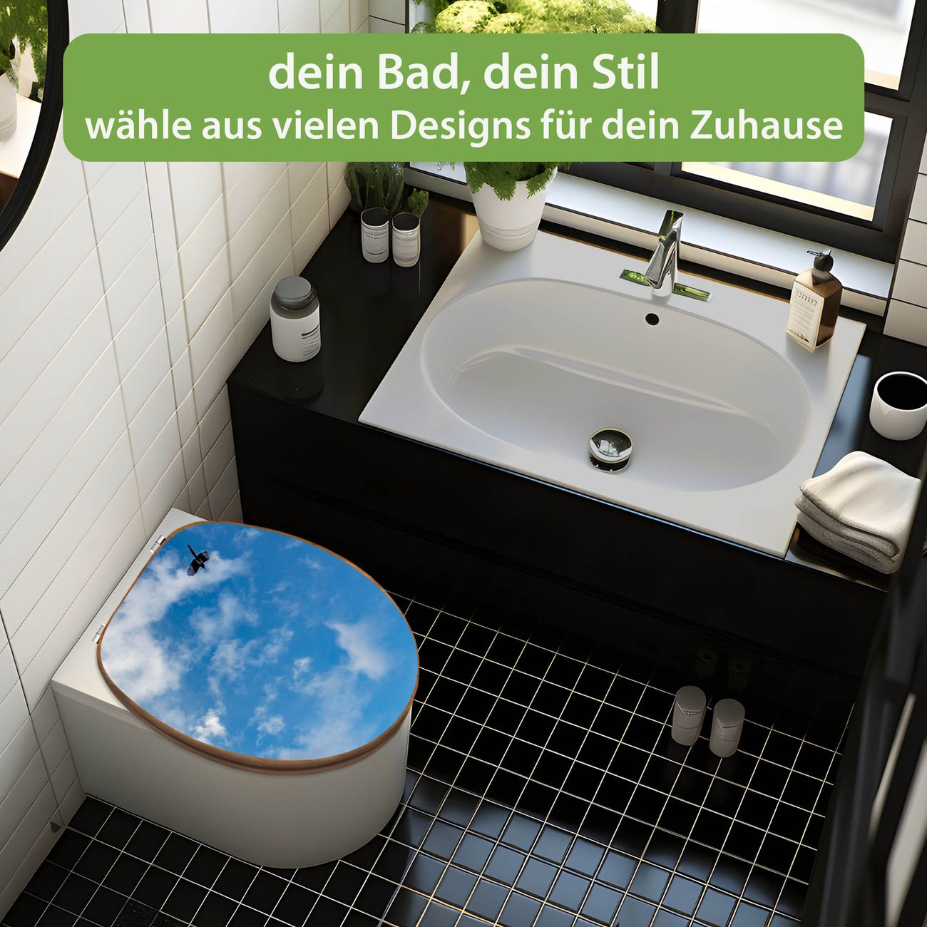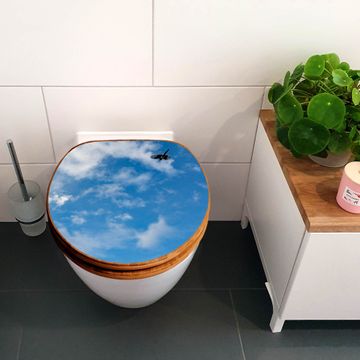 Mit dem banjado Toilettensitz in Bambus verbinden Sie Design und Funktionalität. Sie erhalten den WC-Sitz mit bewährt schwerer Holz Qualität und Universal Scharnieren. Das Motiv Motiv Wolken 4 besteht aus einer schutzlaminierten Motivfolie, die durch das Schutzlaminat zusätzlich vor Kratzern schützt. Durch diesen Motivdruck wird der WC-Sitz zu einem Blickfang in Ihrem Bad.