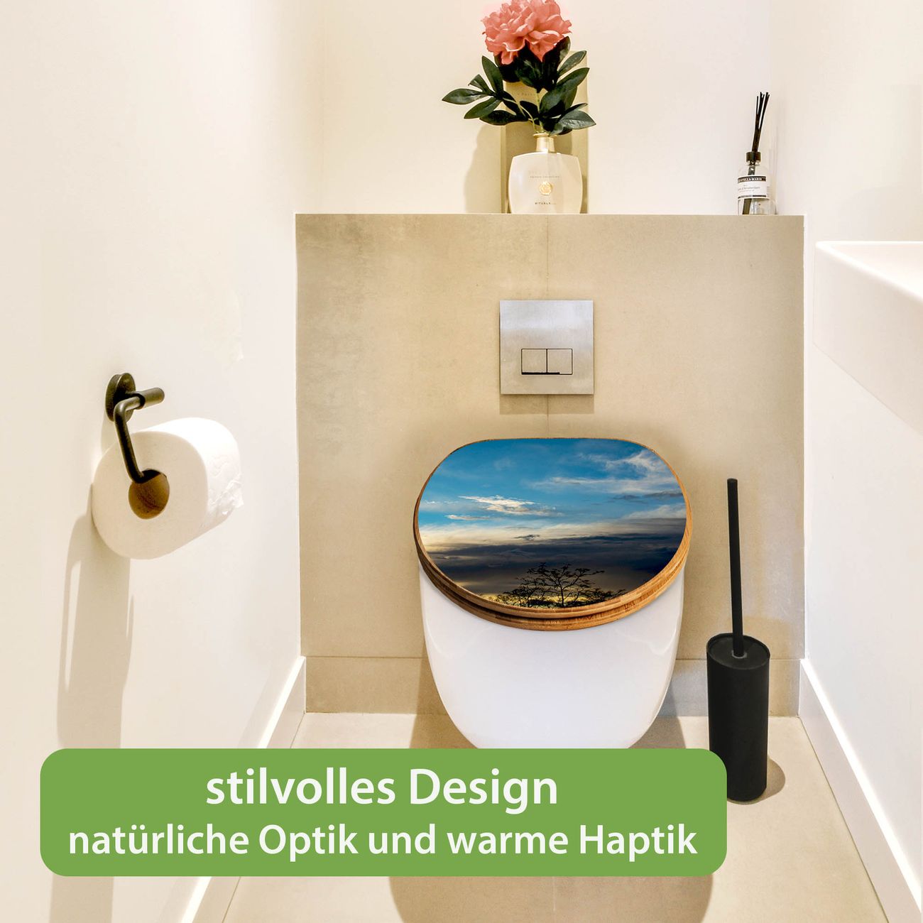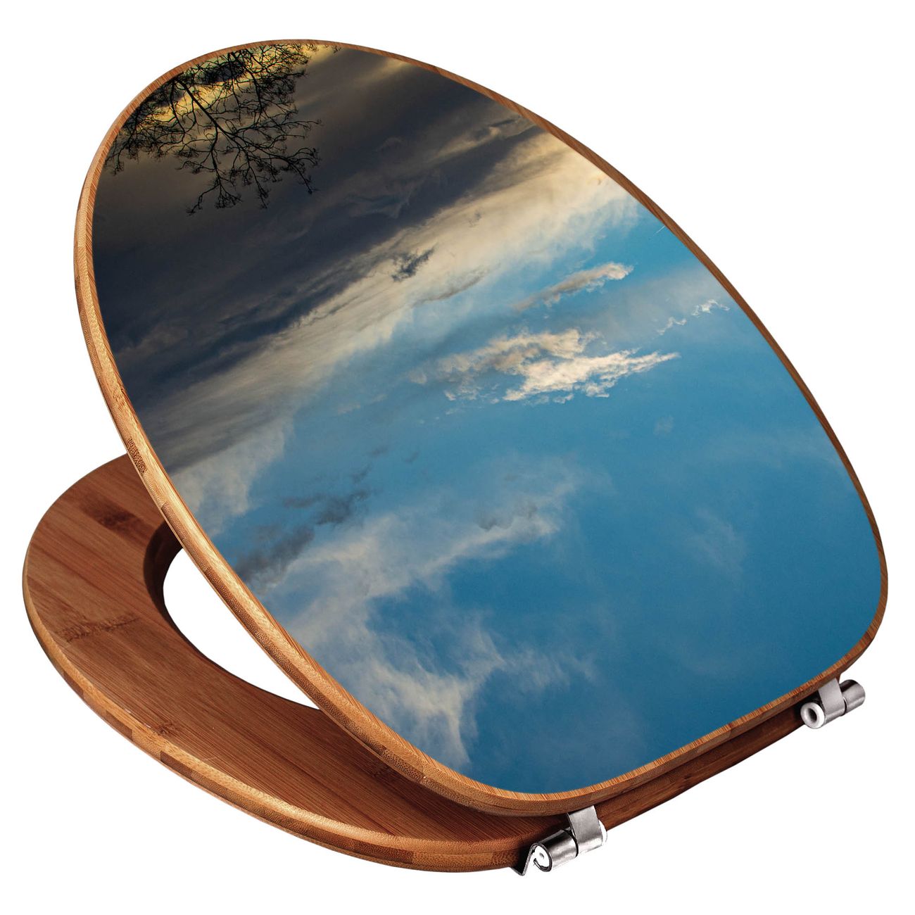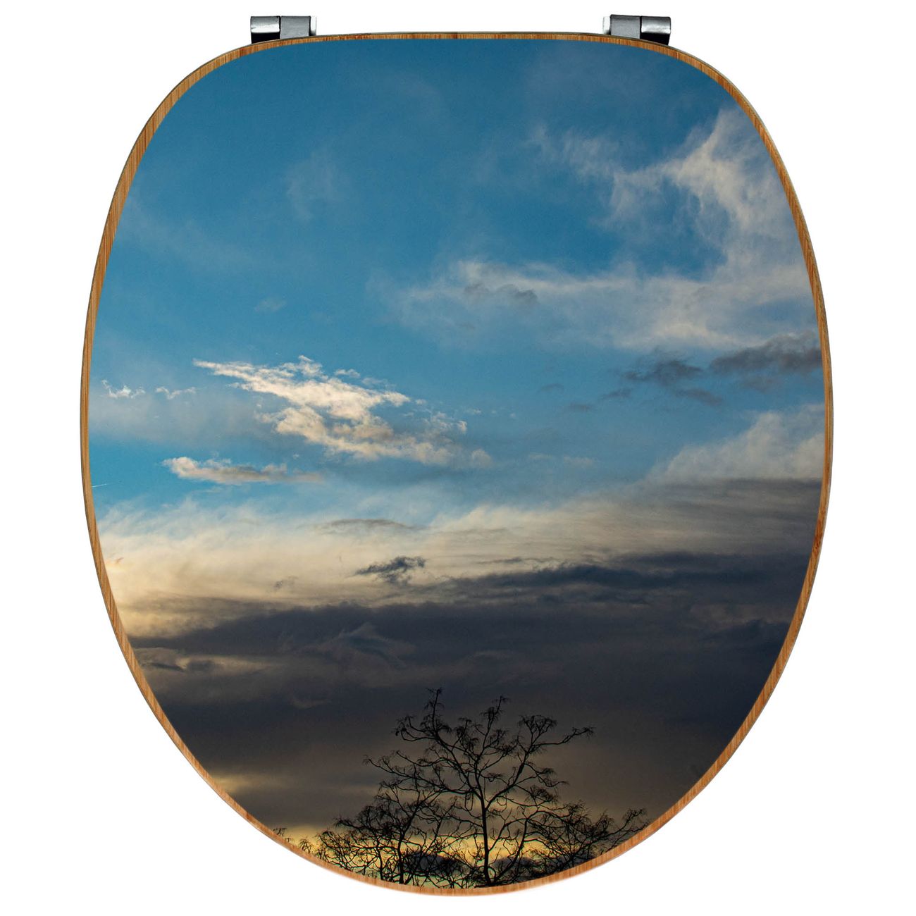 Mit dem banjado Toilettensitz in Bambus verbinden Sie Design und Funktionalität. Sie erhalten den WC-Sitz mit bewährt schwerer Holz Qualität und Universal Scharnieren. Das Motiv Motiv Wolken 7 besteht aus einer schutzlaminierten Motivfolie, die durch das Schutzlaminat zusätzlich vor Kratzern schützt. Durch diesen Motivdruck wird der WC-Sitz zu einem Blickfang in Ihrem Bad.