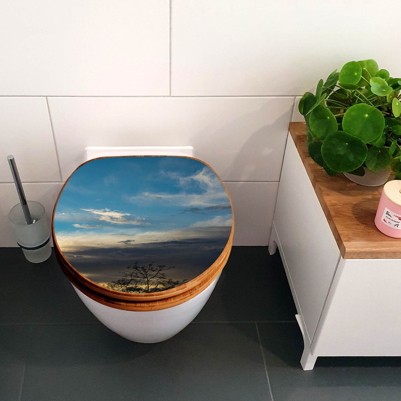 Design WC-Sitz Bambus Holz Motiv Wolken 7