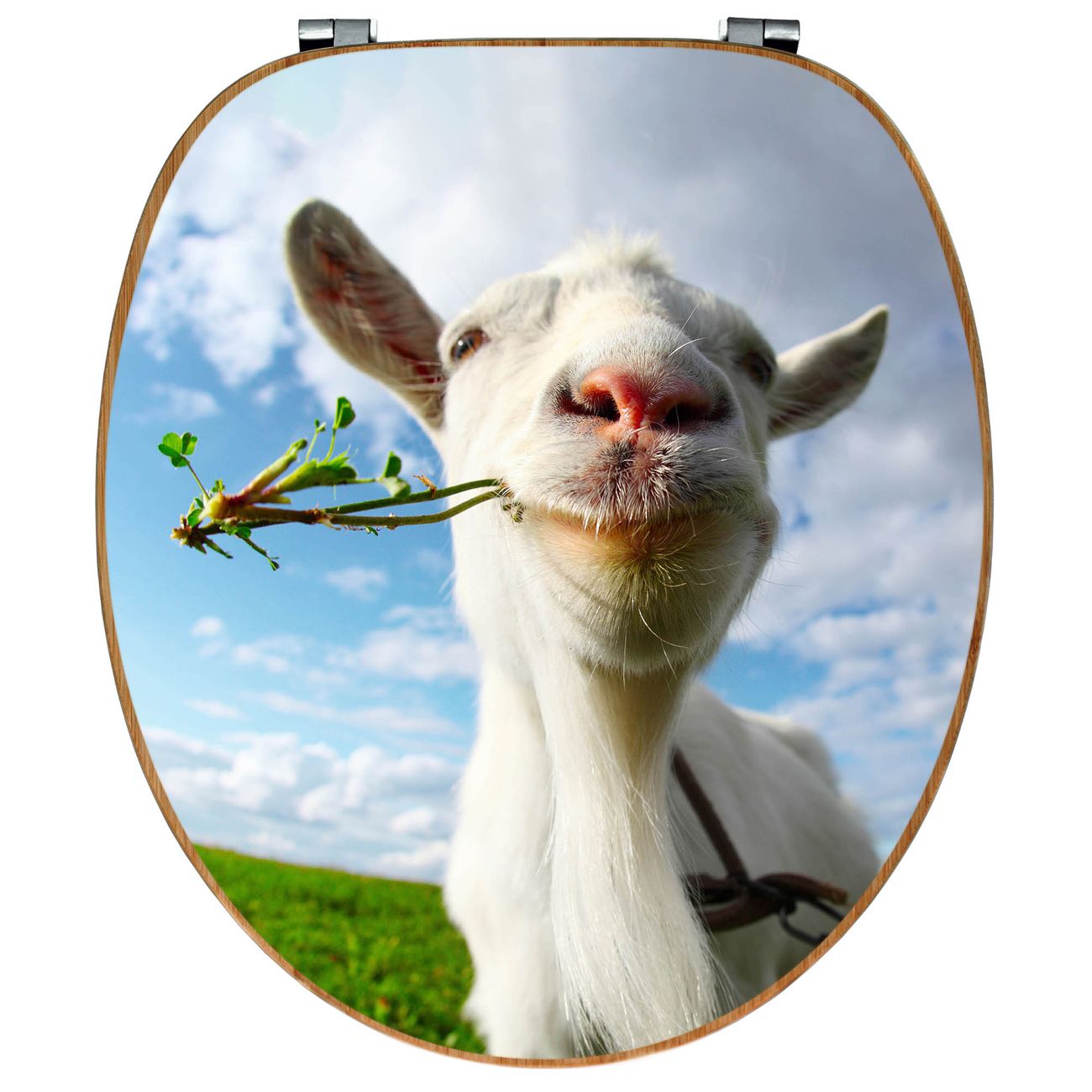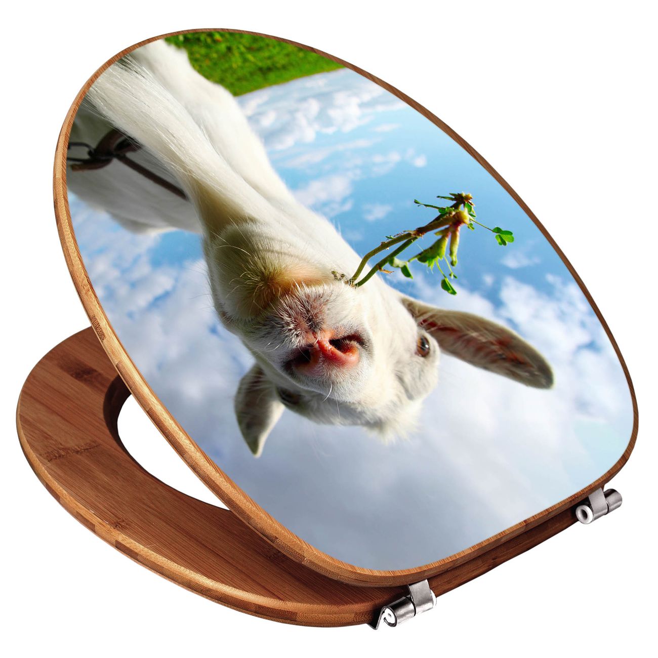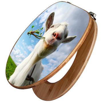 Design WC-Sitz Bambus Holz Motiv Ziege 2
