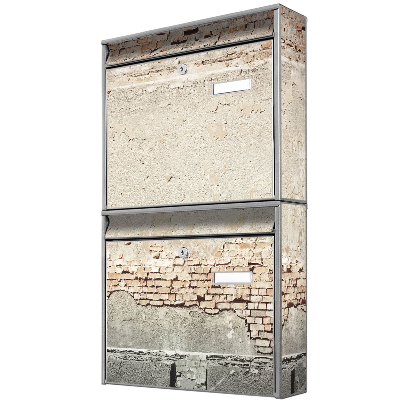 FUNKTION: Die Burg-Wächter Briefkastenanlage mit Motiv Baulücke bietet Ihnen ausreichend Fassungsvermögen um auch A4 und C4 Sendungen zu empfangen. Das integrierte Namensschild lässt sich individuell beschriften. Wählen Sie aus den Grundfarben weiß, silber und schwarz. DESIGN: Die 2 Briefkästen haben ein ansprechendes und zeitloses Design, ohne dabei auf Funktionalität zu verzichten. Das Material ist sehr stabil, wetterfest und rostfrei. Durch das Motiv Baulücke werden die Postkästen zu einem Blickfang. DETAILS: Die Postkästen bestehen aus verzinktem Stahl der zusätzlich mit Klarlack versiegelt wurde. Die Kästen sind gesamt 64,5cm hoch, 36,2cm breit und 10cm tief. Das Motiv besteht aus einer wetter- und UV-festen Folie, die Ihren Briefkasten zusätzlich vor Kratzern schützt. Die Postkästen werden mit Montagematerial, je einem Namensschild und je zwei Schlüsseln geliefert. NUTZEN: Das Briefkastenset eignet sich für die Wandmontage, die Größe bietet genügend Platz für Sendungen aller Art. Das zeitlose Design sowie die stabile Bauart bieten Ihnen einen treuen Begleiter für Ihre Post. BANJADO:
