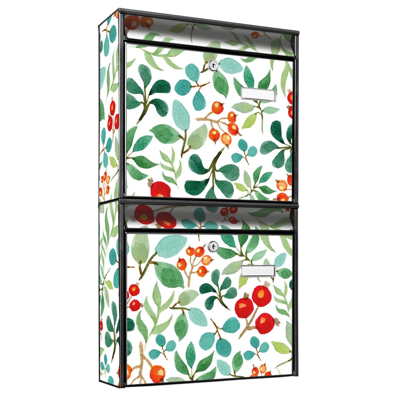Doppelbriefkasten hoch Beeren und Blätter