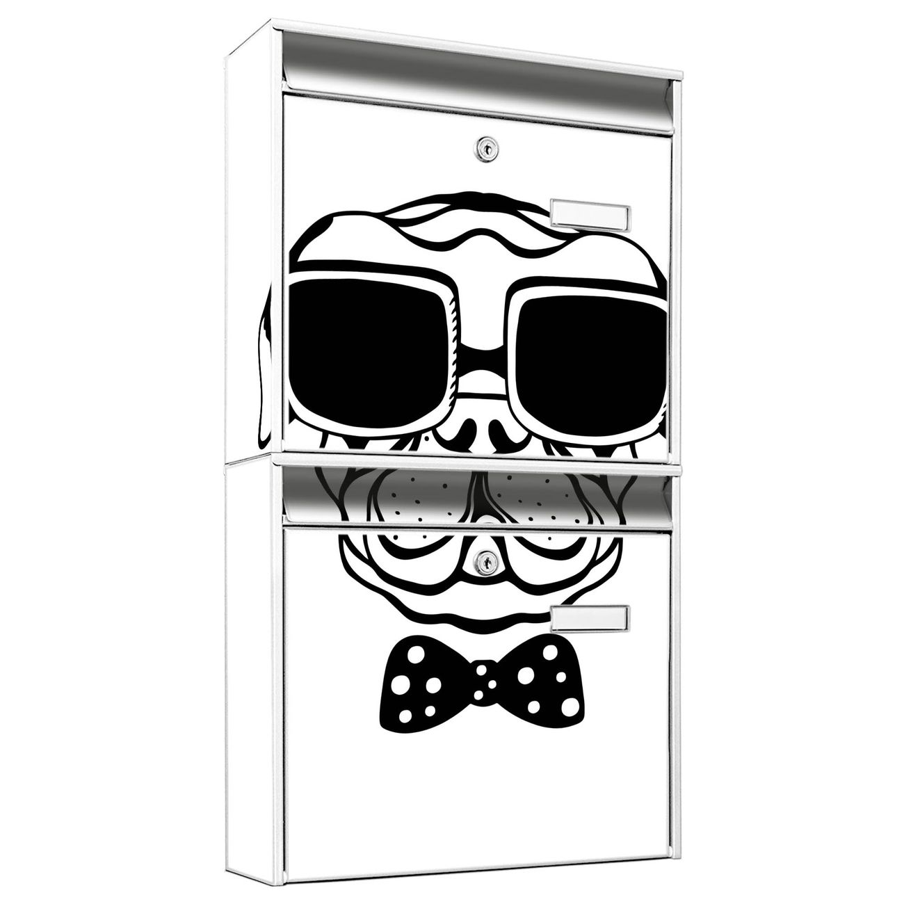 FUNKTION: Die Burg-Wächter Briefkastenanlage mit Motiv Big Boss bietet Ihnen ausreichend Fassungsvermögen um auch A4 und C4 Sendungen zu empfangen. Das integrierte Namensschild lässt sich individuell beschriften. Wählen Sie aus den Grundfarben weiß, silber und schwarz. DESIGN: Die 2 Briefkästen haben ein ansprechendes und zeitloses Design, ohne dabei auf Funktionalität zu verzichten. Das Material ist sehr stabil, wetterfest und rostfrei. Durch das Motiv Big Boss werden die Postkästen zu einem Blickfang. DETAILS: Die Postkästen bestehen aus verzinktem Stahl der zusätzlich mit Klarlack versiegelt wurde. Die Kästen sind gesamt 64,5cm hoch, 36,2cm breit und 10cm tief. Das Motiv besteht aus einer wetter- und UV-festen Folie, die Ihren Briefkasten zusätzlich vor Kratzern schützt. Die Postkästen werden mit Montagematerial, je einem Namensschild und je zwei Schlüsseln geliefert. NUTZEN: Das Briefkastenset eignet sich für die Wandmontage, die Größe bietet genügend Platz für Sendungen aller Art. Das zeitlose Design sowie die stabile Bauart bieten Ihnen einen treuen Begleiter für Ihre Post. BANJADO: