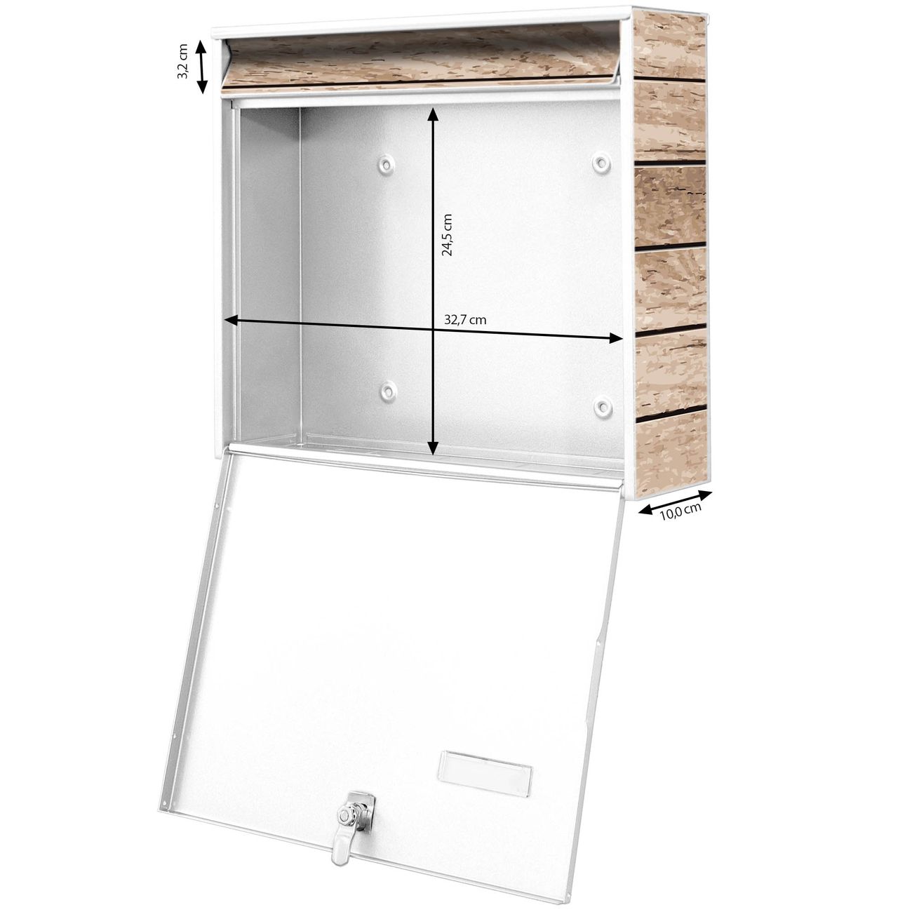 - je Briefschlitz: 34,5 x 3,8cm (B x H)