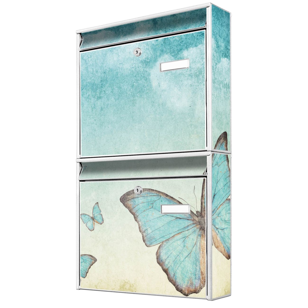 Doppelbriefkasten hoch Blaue Schmetterlinge