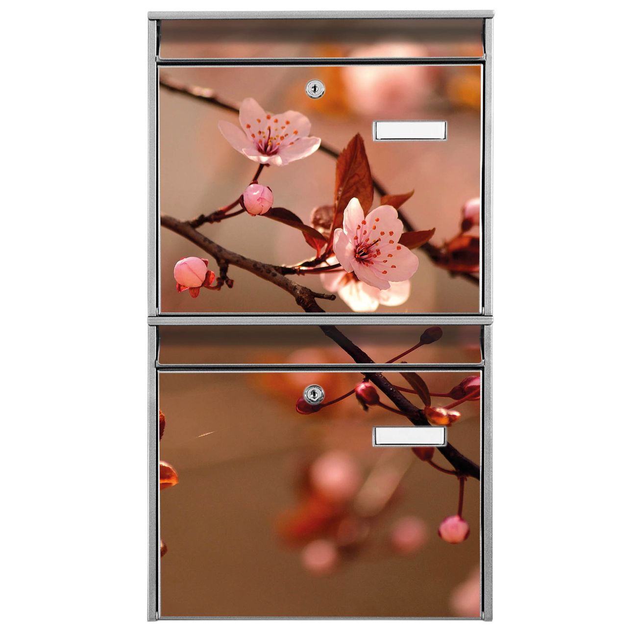 Doppelbriefkasten hoch Blühender Kirschzweig