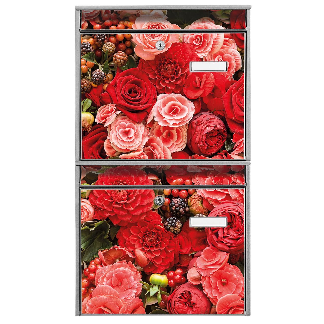 Doppelbriefkasten hoch Bouquet in Rot