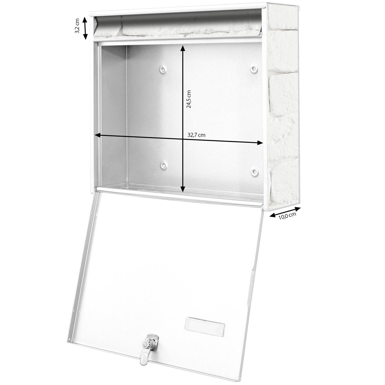 - je Briefschlitz: 34,5 x 3,8cm (B x H)