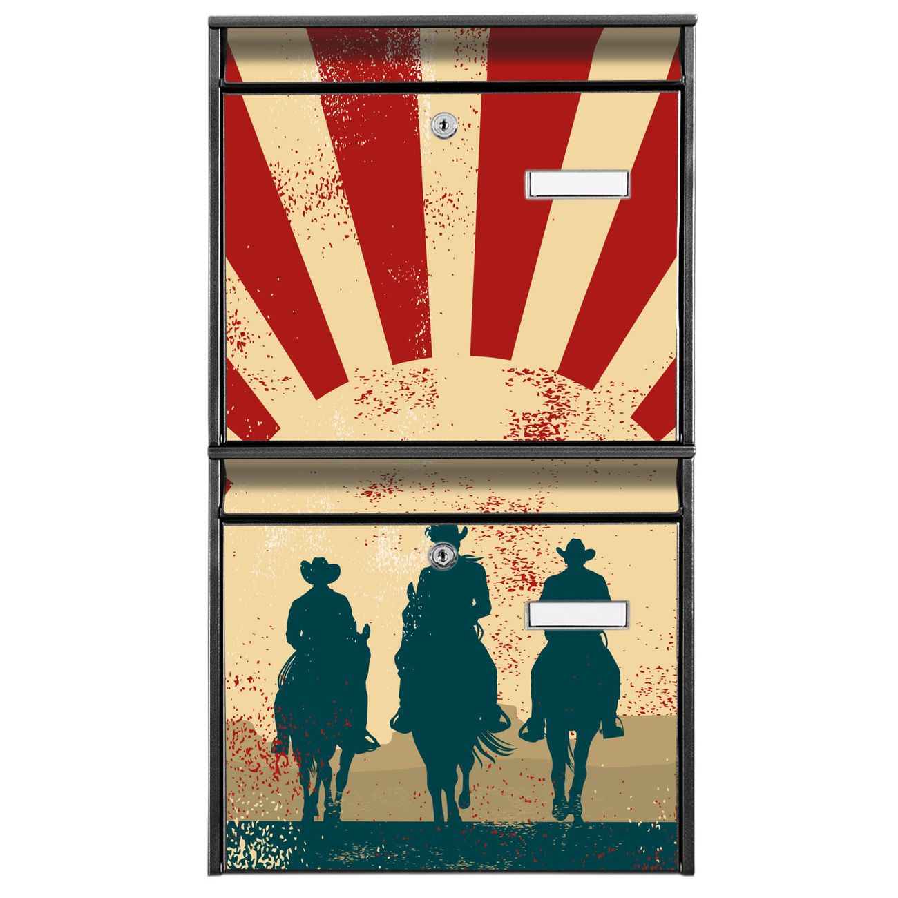 Doppelbriefkasten hoch Drei Cowboys