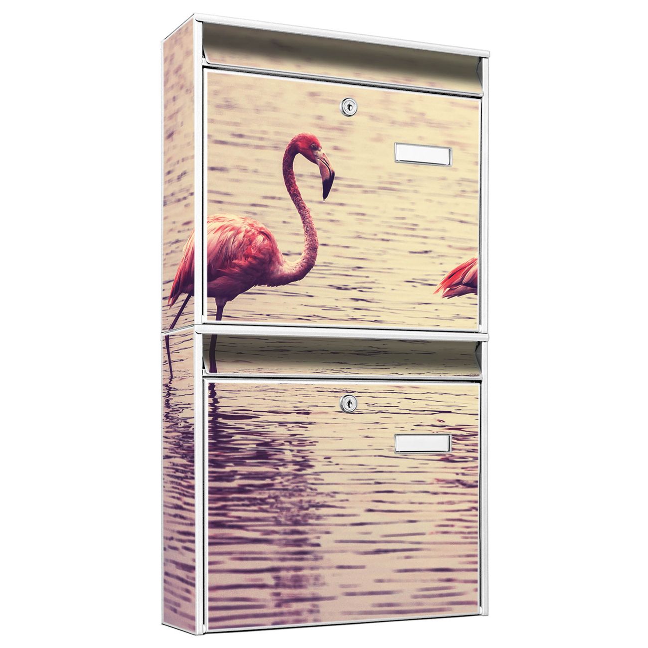 Doppelbriefkasten hoch Drei Flamnigos