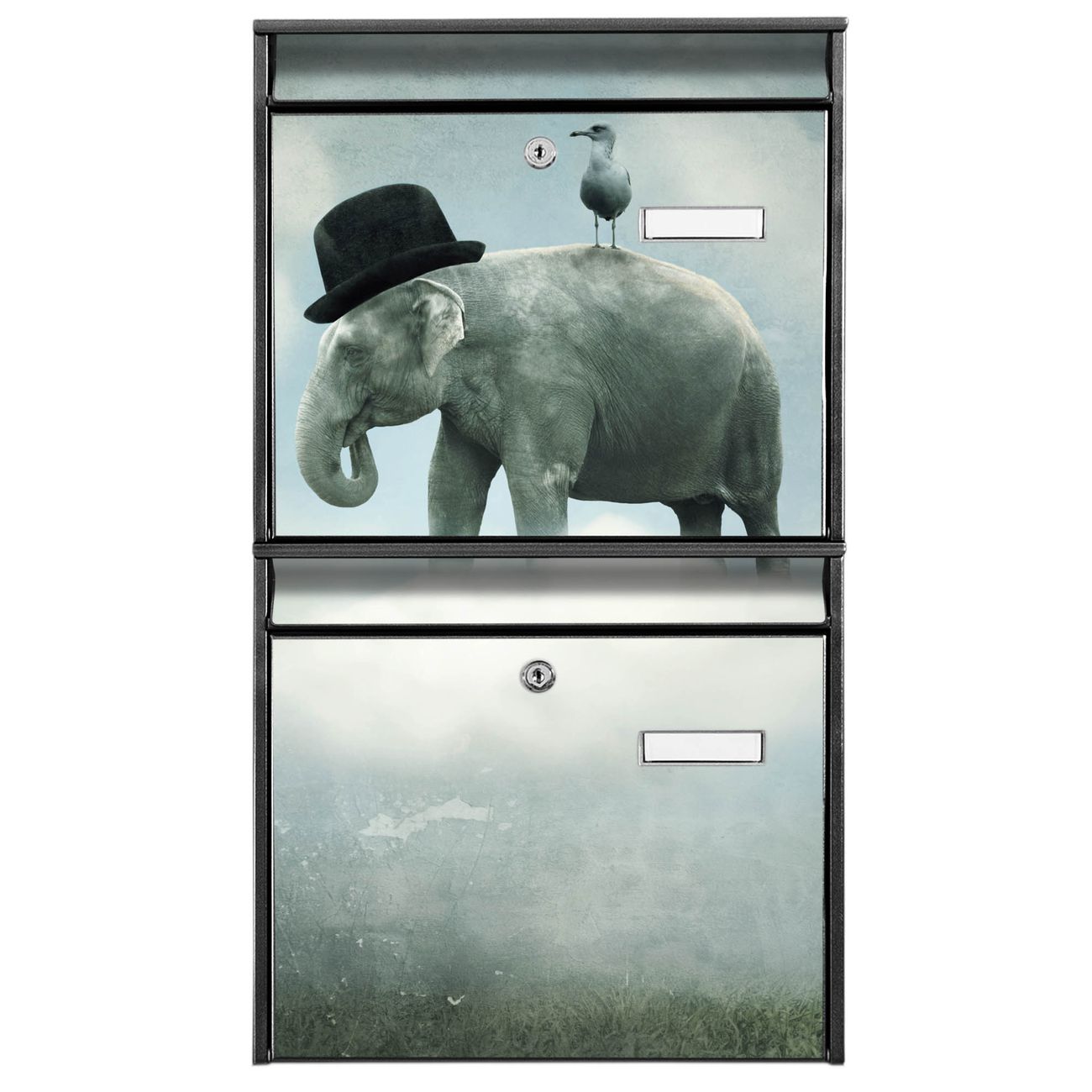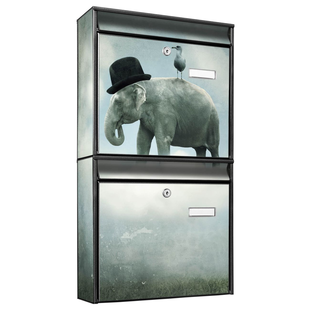 Doppelbriefkasten hoch Elefant und Möwe