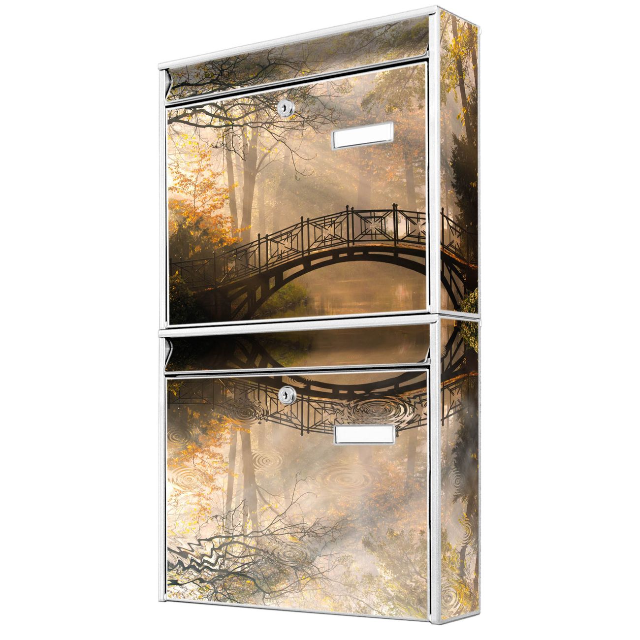 FUNKTION: Die Burg-Wächter Briefkastenanlage mit Motiv Englischer Garten bietet Ihnen ausreichend Fassungsvermögen um auch A4 und C4 Sendungen zu empfangen. Das integrierte Namensschild lässt sich individuell beschriften. Wählen Sie aus den Grundfarben weiß, silber und schwarz. DESIGN: Die 2 Briefkästen haben ein ansprechendes und zeitloses Design, ohne dabei auf Funktionalität zu verzichten. Das Material ist sehr stabil, wetterfest und rostfrei. Durch das Motiv Englischer Garten werden die Postkästen zu einem Blickfang. DETAILS: Die Postkästen bestehen aus verzinktem Stahl der zusätzlich mit Klarlack versiegelt wurde. Die Kästen sind gesamt 64,5cm hoch, 36,2cm breit und 10cm tief. Das Motiv besteht aus einer wetter- und UV-festen Folie, die Ihren Briefkasten zusätzlich vor Kratzern schützt. Die Postkästen werden mit Montagematerial, je einem Namensschild und je zwei Schlüsseln geliefert. NUTZEN: Das Briefkastenset eignet sich für die Wandmontage, die Größe bietet genügend Platz für Sendungen aller Art. Das zeitlose Design sowie die stabile Bauart bieten Ihnen einen treuen Begleiter für Ihre Post. BANJADO: