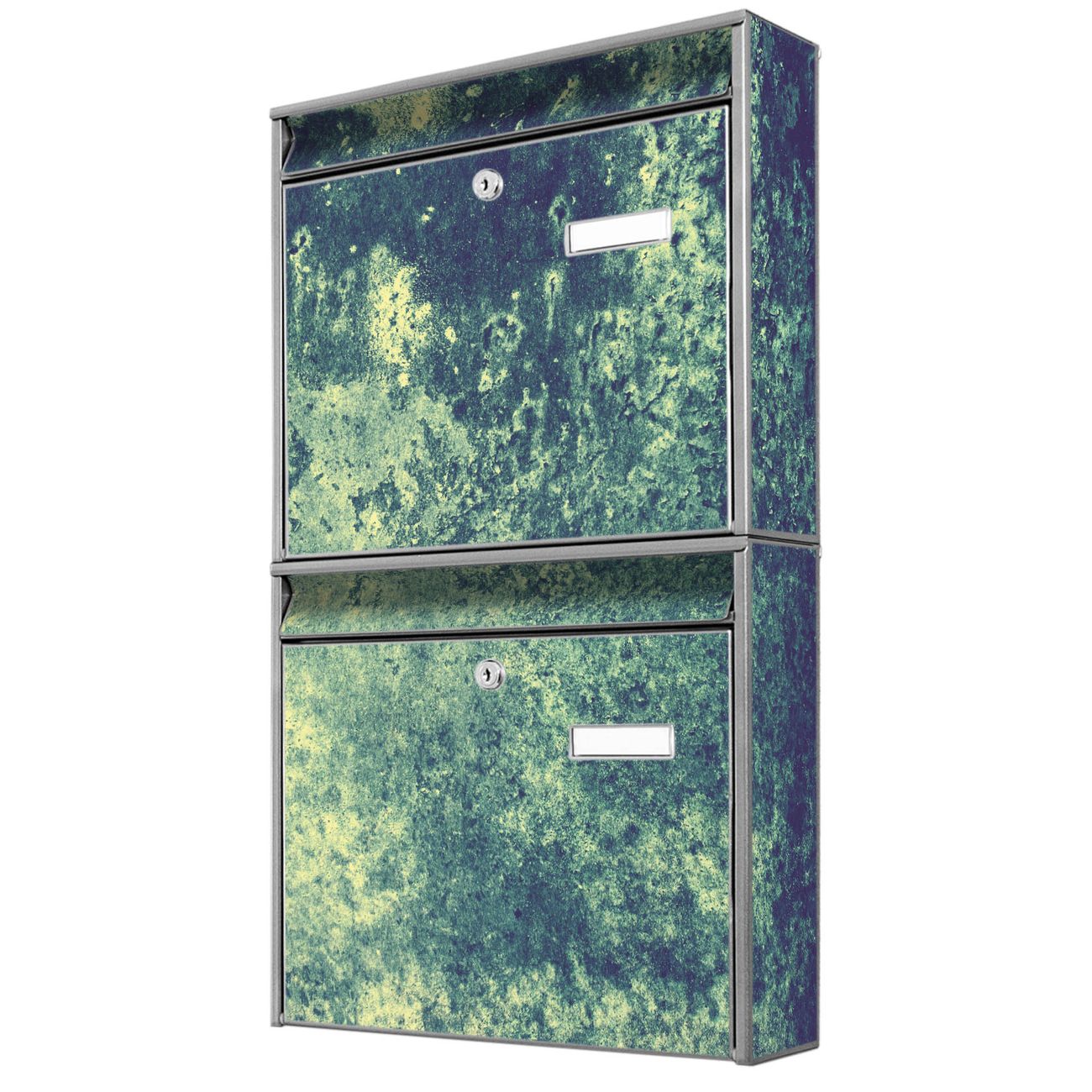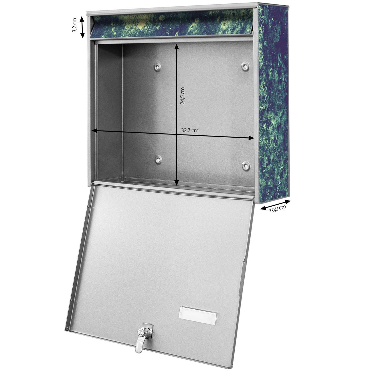 FUNKTION: Die Burg-Wächter Briefkastenanlage mit Motiv Farbuniversum bietet Ihnen ausreichend Fassungsvermögen um auch A4 und C4 Sendungen zu empfangen. Das integrierte Namensschild lässt sich individuell beschriften. Wählen Sie aus den Grundfarben weiß, silber und schwarz. DESIGN: Die 2 Briefkästen haben ein ansprechendes und zeitloses Design, ohne dabei auf Funktionalität zu verzichten. Das Material ist sehr stabil, wetterfest und rostfrei. Durch das Motiv Farbuniversum werden die Postkästen zu einem Blickfang. DETAILS: Die Postkästen bestehen aus verzinktem Stahl der zusätzlich mit Klarlack versiegelt wurde. Die Kästen sind gesamt 64,5cm hoch, 36,2cm breit und 10cm tief. Das Motiv besteht aus einer wetter- und UV-festen Folie, die Ihren Briefkasten zusätzlich vor Kratzern schützt. Die Postkästen werden mit Montagematerial, je einem Namensschild und je zwei Schlüsseln geliefert. NUTZEN: Das Briefkastenset eignet sich für die Wandmontage, die Größe bietet genügend Platz für Sendungen aller Art. Das zeitlose Design sowie die stabile Bauart bieten Ihnen einen treuen Begleiter für Ihre Post. BANJADO: