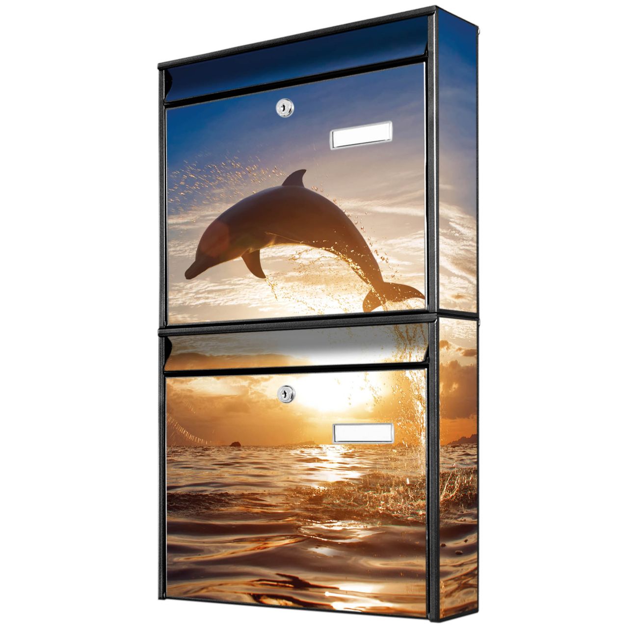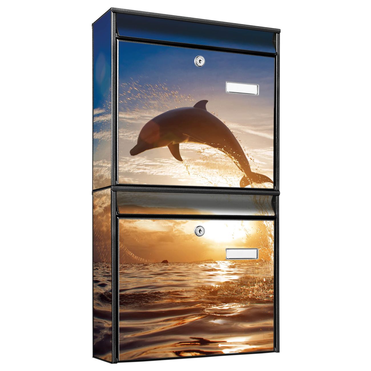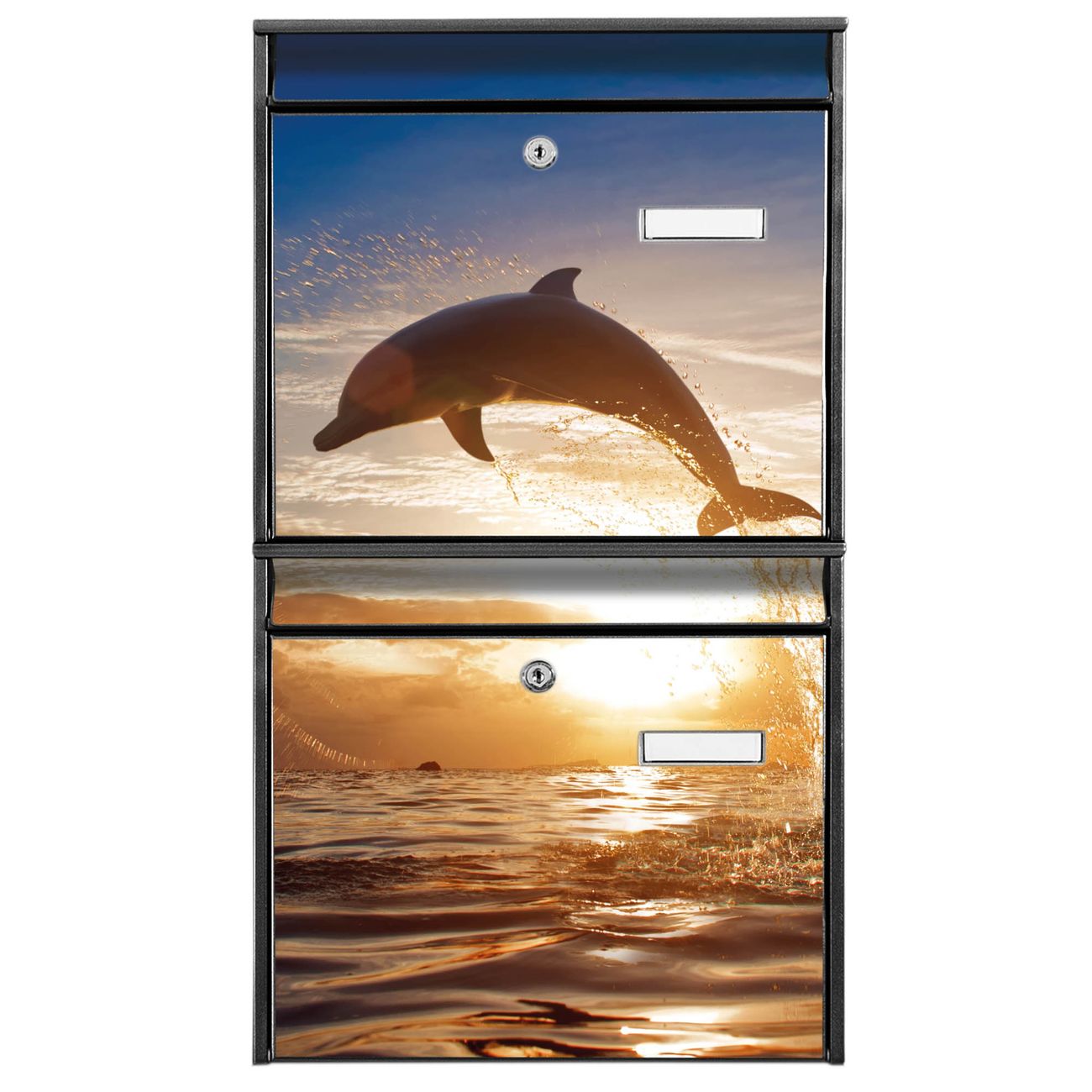 FUNKTION: Die Burg-Wächter Briefkastenanlage mit Motiv Filippo bietet Ihnen ausreichend Fassungsvermögen um auch A4 und C4 Sendungen zu empfangen. Das integrierte Namensschild lässt sich individuell beschriften. Wählen Sie aus den Grundfarben weiß, silber und schwarz. DESIGN: Die 2 Briefkästen haben ein ansprechendes und zeitloses Design, ohne dabei auf Funktionalität zu verzichten. Das Material ist sehr stabil, wetterfest und rostfrei. Durch das Motiv Filippo werden die Postkästen zu einem Blickfang. DETAILS: Die Postkästen bestehen aus verzinktem Stahl der zusätzlich mit Klarlack versiegelt wurde. Die Kästen sind gesamt 64,5cm hoch, 36,2cm breit und 10cm tief. Das Motiv besteht aus einer wetter- und UV-festen Folie, die Ihren Briefkasten zusätzlich vor Kratzern schützt. Die Postkästen werden mit Montagematerial, je einem Namensschild und je zwei Schlüsseln geliefert. NUTZEN: Das Briefkastenset eignet sich für die Wandmontage, die Größe bietet genügend Platz für Sendungen aller Art. Das zeitlose Design sowie die stabile Bauart bieten Ihnen einen treuen Begleiter für Ihre Post. BANJADO: