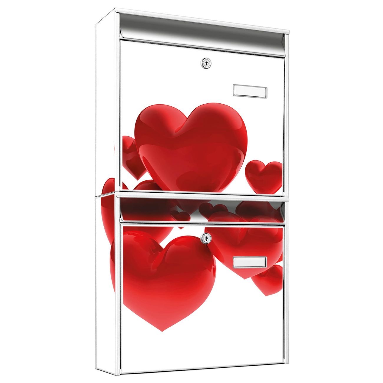 Doppelbriefkasten hoch Fliegende Herzen