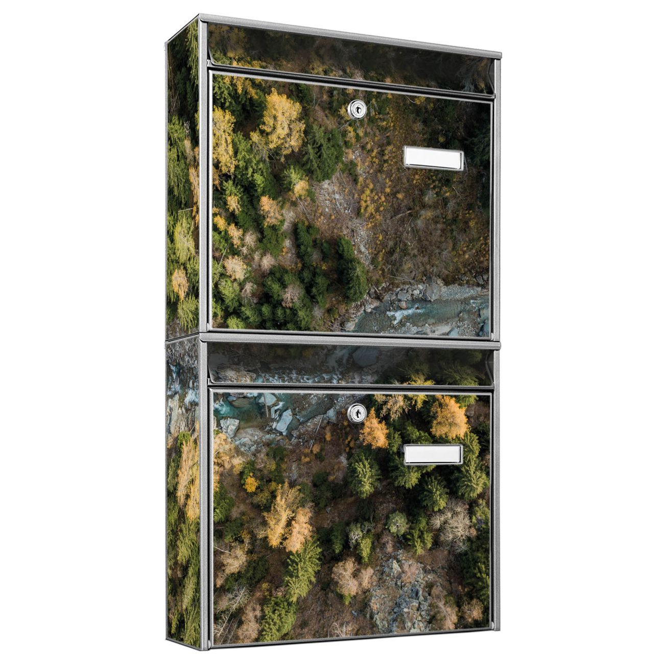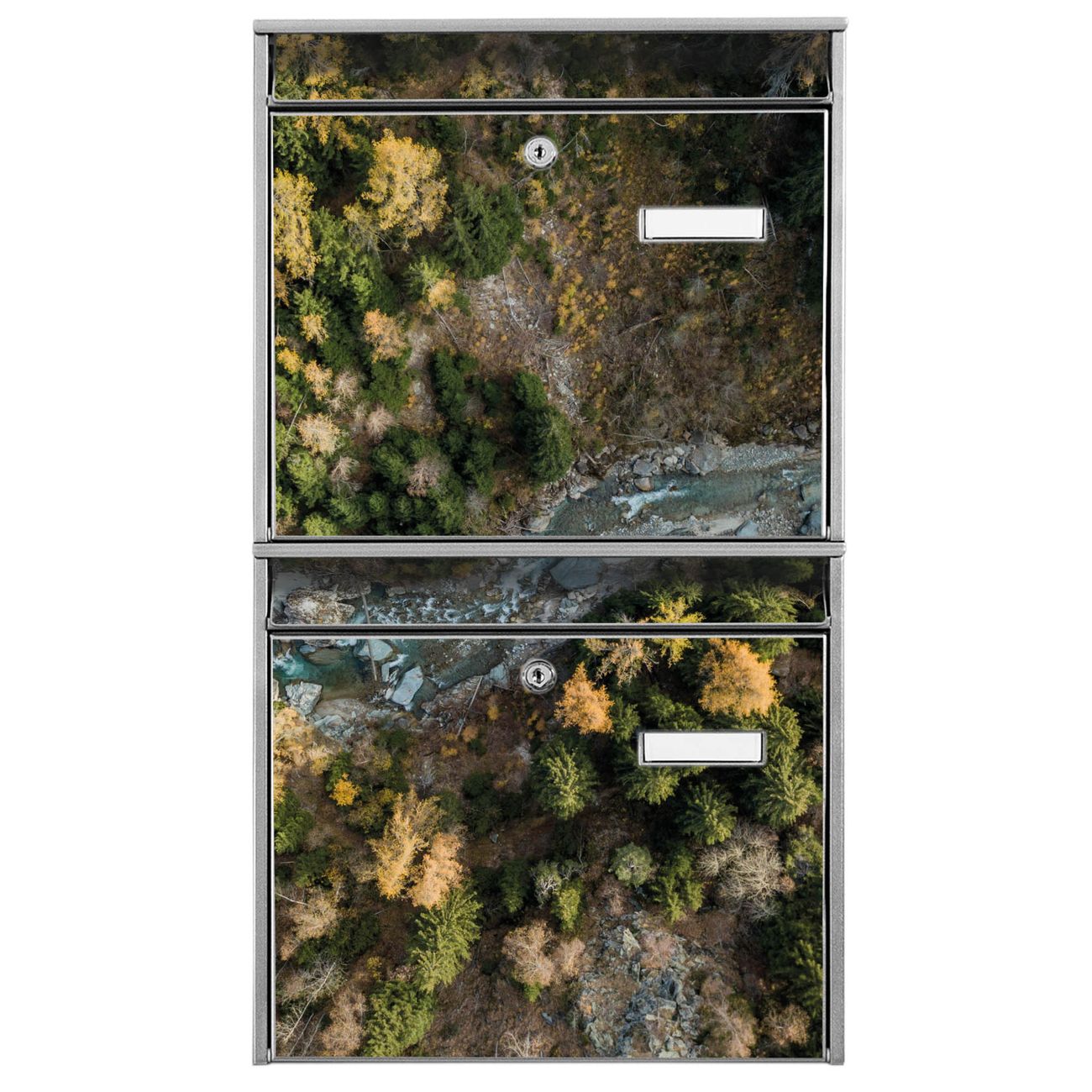 FUNKTION: Die Burg-Wächter Briefkastenanlage mit Motiv Fluss im Tal 2 bietet Ihnen ausreichend Fassungsvermögen um auch A4 und C4 Sendungen zu empfangen. Das integrierte Namensschild lässt sich individuell beschriften. Wählen Sie aus den Grundfarben weiß, silber und schwarz. DESIGN: Die 2 Briefkästen haben ein ansprechendes und zeitloses Design, ohne dabei auf Funktionalität zu verzichten. Das Material ist sehr stabil, wetterfest und rostfrei. Durch das Motiv Fluss im Tal 2 werden die Postkästen zu einem Blickfang. DETAILS: Die Postkästen bestehen aus verzinktem Stahl der zusätzlich mit Klarlack versiegelt wurde. Die Kästen sind gesamt 64,5cm hoch, 36,2cm breit und 10cm tief. Das Motiv besteht aus einer wetter- und UV-festen Folie, die Ihren Briefkasten zusätzlich vor Kratzern schützt. Die Postkästen werden mit Montagematerial, je einem Namensschild und je zwei Schlüsseln geliefert. NUTZEN: Das Briefkastenset eignet sich für die Wandmontage, die Größe bietet genügend Platz für Sendungen aller Art. Das zeitlose Design sowie die stabile Bauart bieten Ihnen einen treuen Begleiter für Ihre Post. BANJADO: