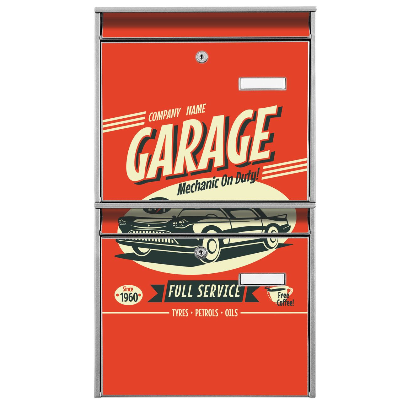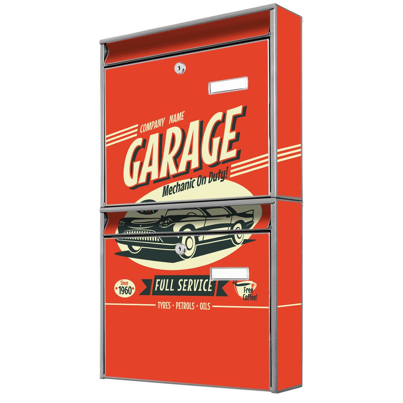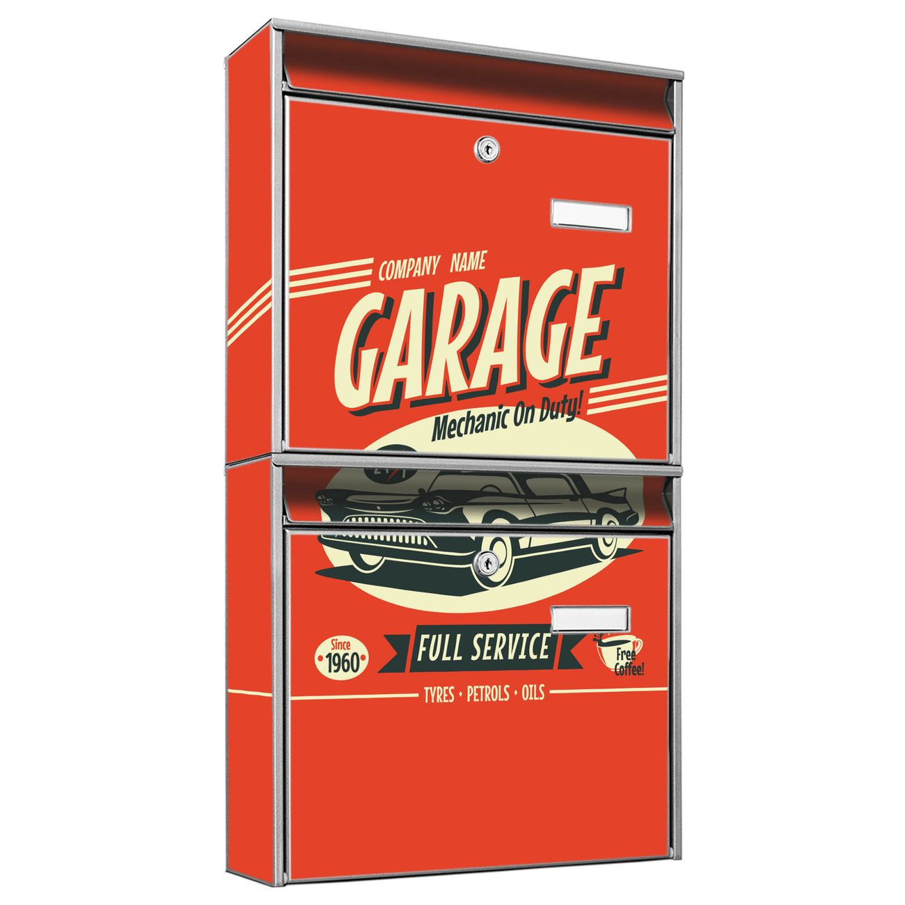 FUNKTION: Die Burg-Wächter Briefkastenanlage mit Motiv Full Service bietet Ihnen ausreichend Fassungsvermögen um auch A4 und C4 Sendungen zu empfangen. Das integrierte Namensschild lässt sich individuell beschriften. Wählen Sie aus den Grundfarben weiß, silber und schwarz. DESIGN: Die 2 Briefkästen haben ein ansprechendes und zeitloses Design, ohne dabei auf Funktionalität zu verzichten. Das Material ist sehr stabil, wetterfest und rostfrei. Durch das Motiv Full Service werden die Postkästen zu einem Blickfang. DETAILS: Die Postkästen bestehen aus verzinktem Stahl der zusätzlich mit Klarlack versiegelt wurde. Die Kästen sind gesamt 64,5cm hoch, 36,2cm breit und 10cm tief. Das Motiv besteht aus einer wetter- und UV-festen Folie, die Ihren Briefkasten zusätzlich vor Kratzern schützt. Die Postkästen werden mit Montagematerial, je einem Namensschild und je zwei Schlüsseln geliefert. NUTZEN: Das Briefkastenset eignet sich für die Wandmontage, die Größe bietet genügend Platz für Sendungen aller Art. Das zeitlose Design sowie die stabile Bauart bieten Ihnen einen treuen Begleiter für Ihre Post. BANJADO: