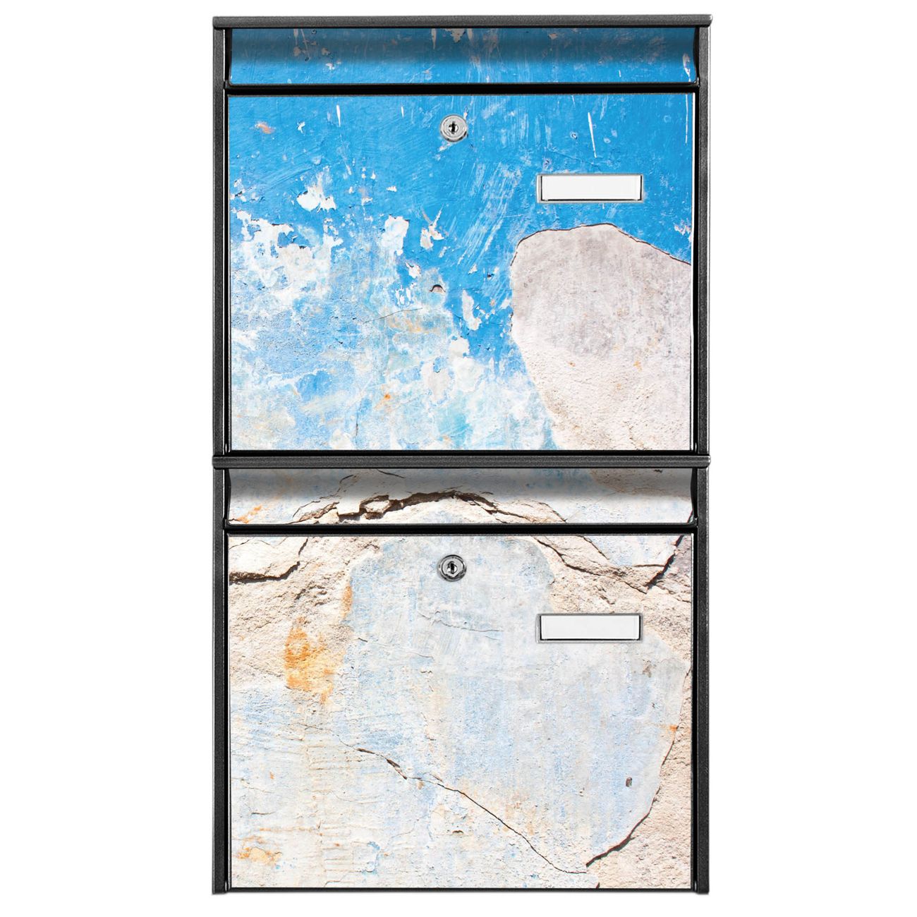 FUNKTION: Die Burg-Wächter Briefkastenanlage mit Motiv Gebrochene Wand bietet Ihnen ausreichend Fassungsvermögen um auch A4 und C4 Sendungen zu empfangen. Das integrierte Namensschild lässt sich individuell beschriften. Wählen Sie aus den Grundfarben weiß, silber und schwarz. DESIGN: Die 2 Briefkästen haben ein ansprechendes und zeitloses Design, ohne dabei auf Funktionalität zu verzichten. Das Material ist sehr stabil, wetterfest und rostfrei. Durch das Motiv Gebrochene Wand werden die Postkästen zu einem Blickfang. DETAILS: Die Postkästen bestehen aus verzinktem Stahl der zusätzlich mit Klarlack versiegelt wurde. Die Kästen sind gesamt 64,5cm hoch, 36,2cm breit und 10cm tief. Das Motiv besteht aus einer wetter- und UV-festen Folie, die Ihren Briefkasten zusätzlich vor Kratzern schützt. Die Postkästen werden mit Montagematerial, je einem Namensschild und je zwei Schlüsseln geliefert. NUTZEN: Das Briefkastenset eignet sich für die Wandmontage, die Größe bietet genügend Platz für Sendungen aller Art. Das zeitlose Design sowie die stabile Bauart bieten Ihnen einen treuen Begleiter für Ihre Post. BANJADO:
