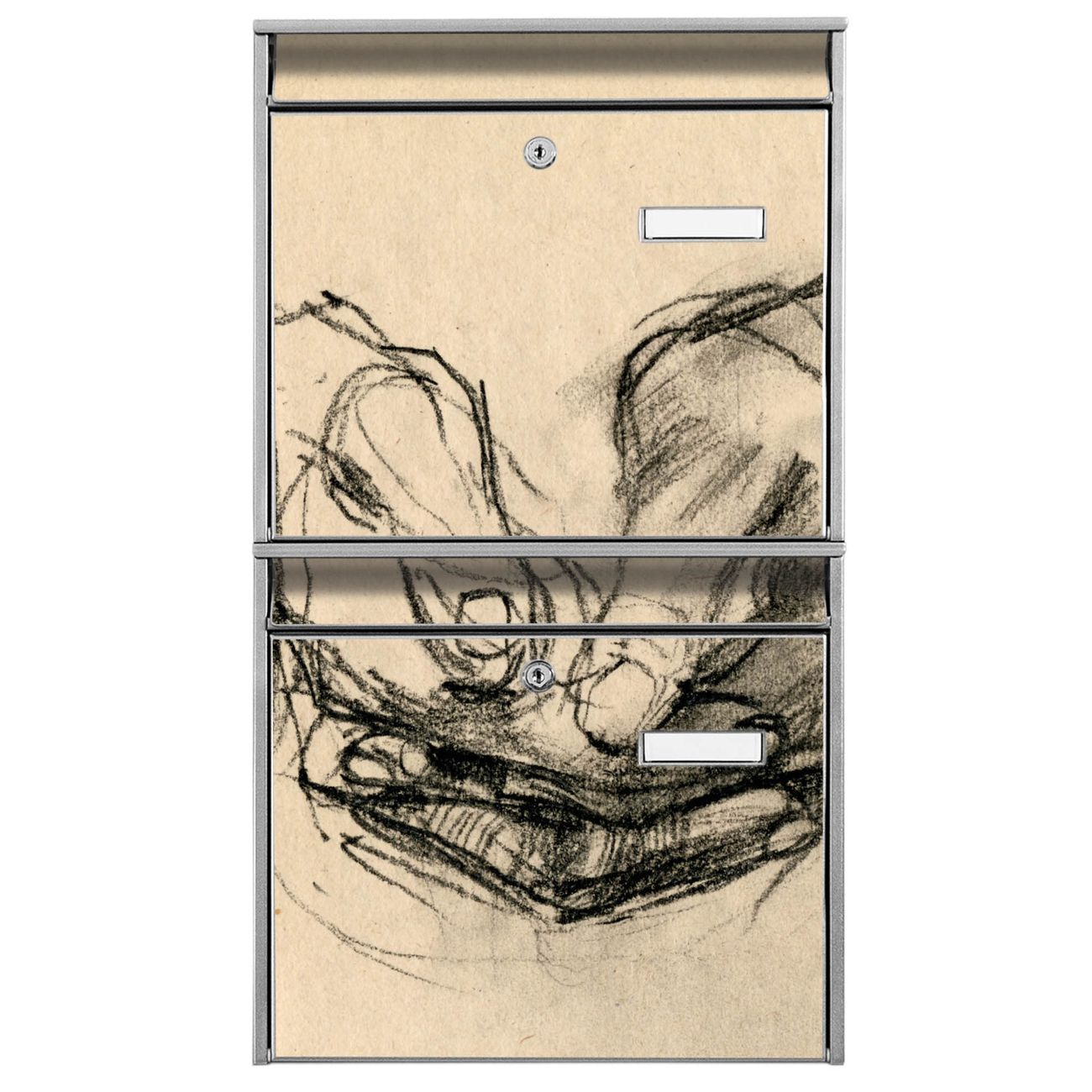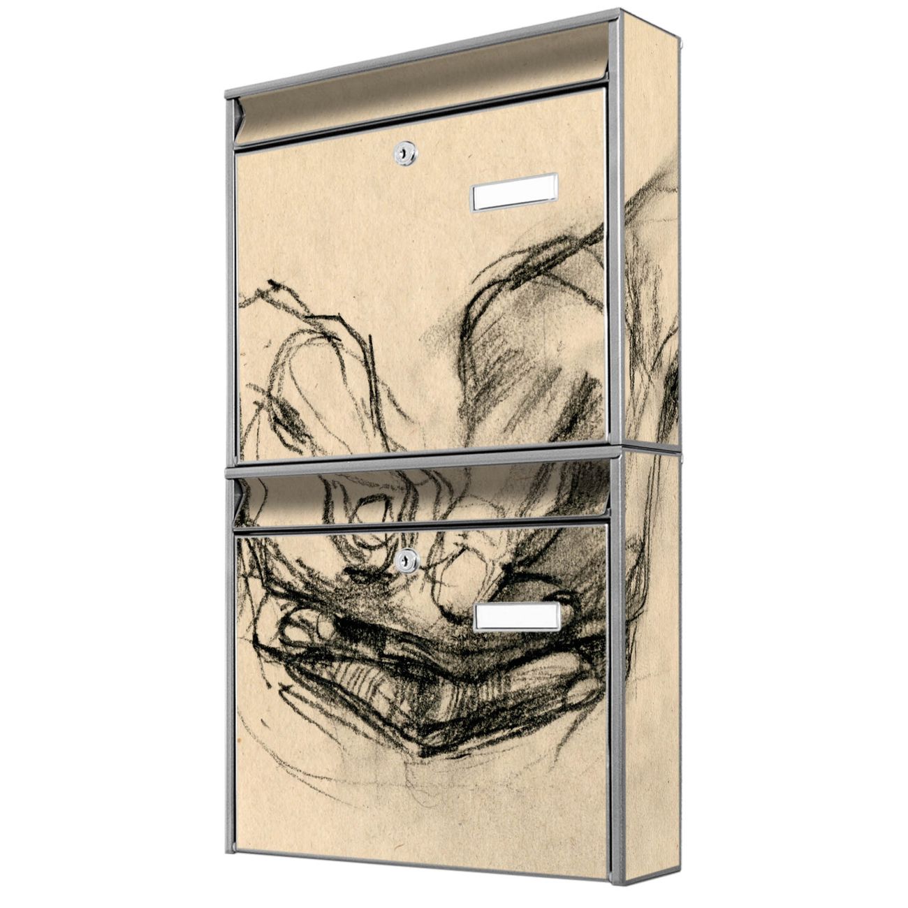 FUNKTION: Die Burg-Wächter Briefkastenanlage mit Motiv Gefaltete Hände bietet Ihnen ausreichend Fassungsvermögen um auch A4 und C4 Sendungen zu empfangen. Das integrierte Namensschild lässt sich individuell beschriften. Wählen Sie aus den Grundfarben weiß, silber und schwarz. DESIGN: Die 2 Briefkästen haben ein ansprechendes und zeitloses Design, ohne dabei auf Funktionalität zu verzichten. Das Material ist sehr stabil, wetterfest und rostfrei. Durch das Motiv Gefaltete Hände werden die Postkästen zu einem Blickfang. DETAILS: Die Postkästen bestehen aus verzinktem Stahl der zusätzlich mit Klarlack versiegelt wurde. Die Kästen sind gesamt 64,5cm hoch, 36,2cm breit und 10cm tief. Das Motiv besteht aus einer wetter- und UV-festen Folie, die Ihren Briefkasten zusätzlich vor Kratzern schützt. Die Postkästen werden mit Montagematerial, je einem Namensschild und je zwei Schlüsseln geliefert. NUTZEN: Das Briefkastenset eignet sich für die Wandmontage, die Größe bietet genügend Platz für Sendungen aller Art. Das zeitlose Design sowie die stabile Bauart bieten Ihnen einen treuen Begleiter für Ihre Post. BANJADO: