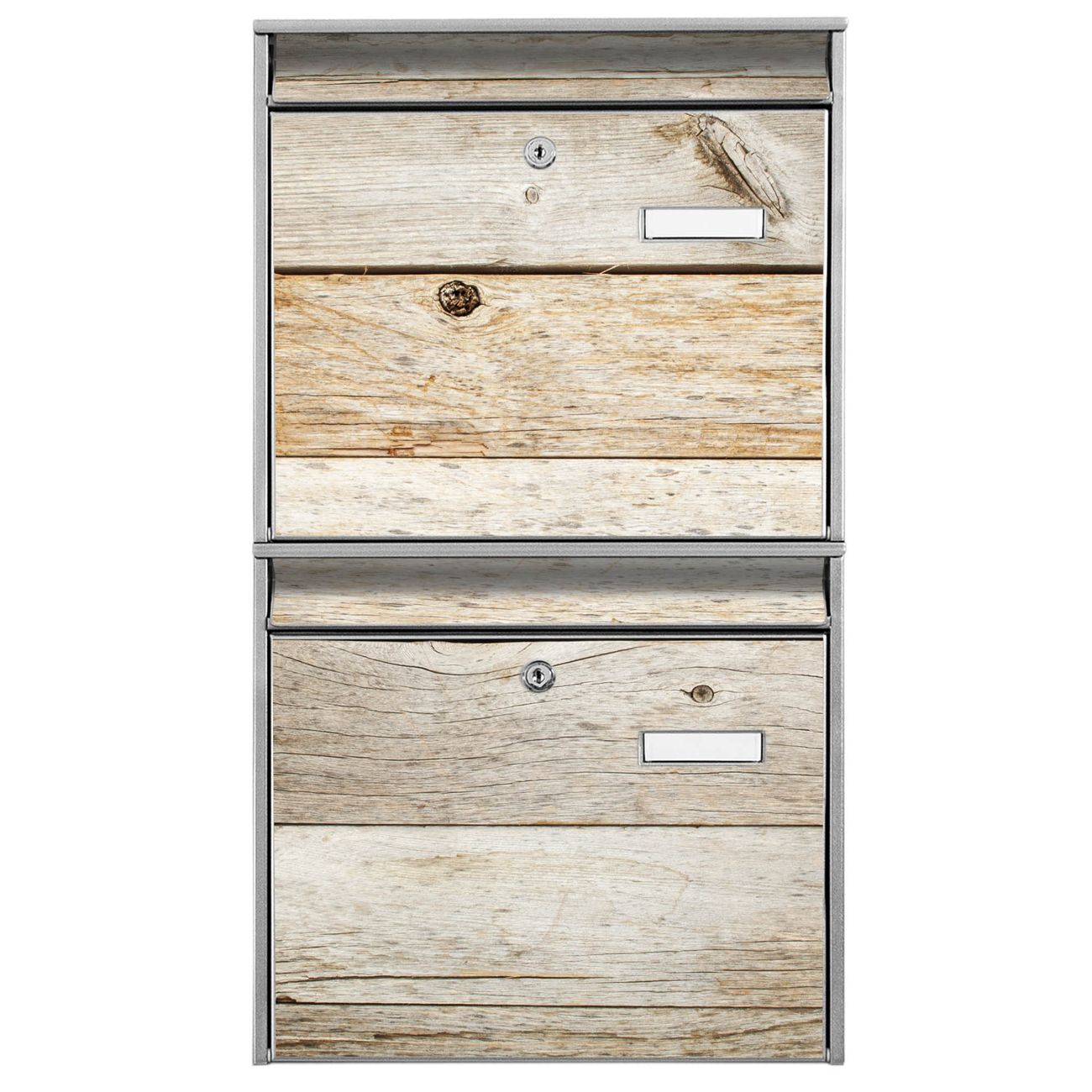 Doppelbriefkasten hoch Graues Holz
