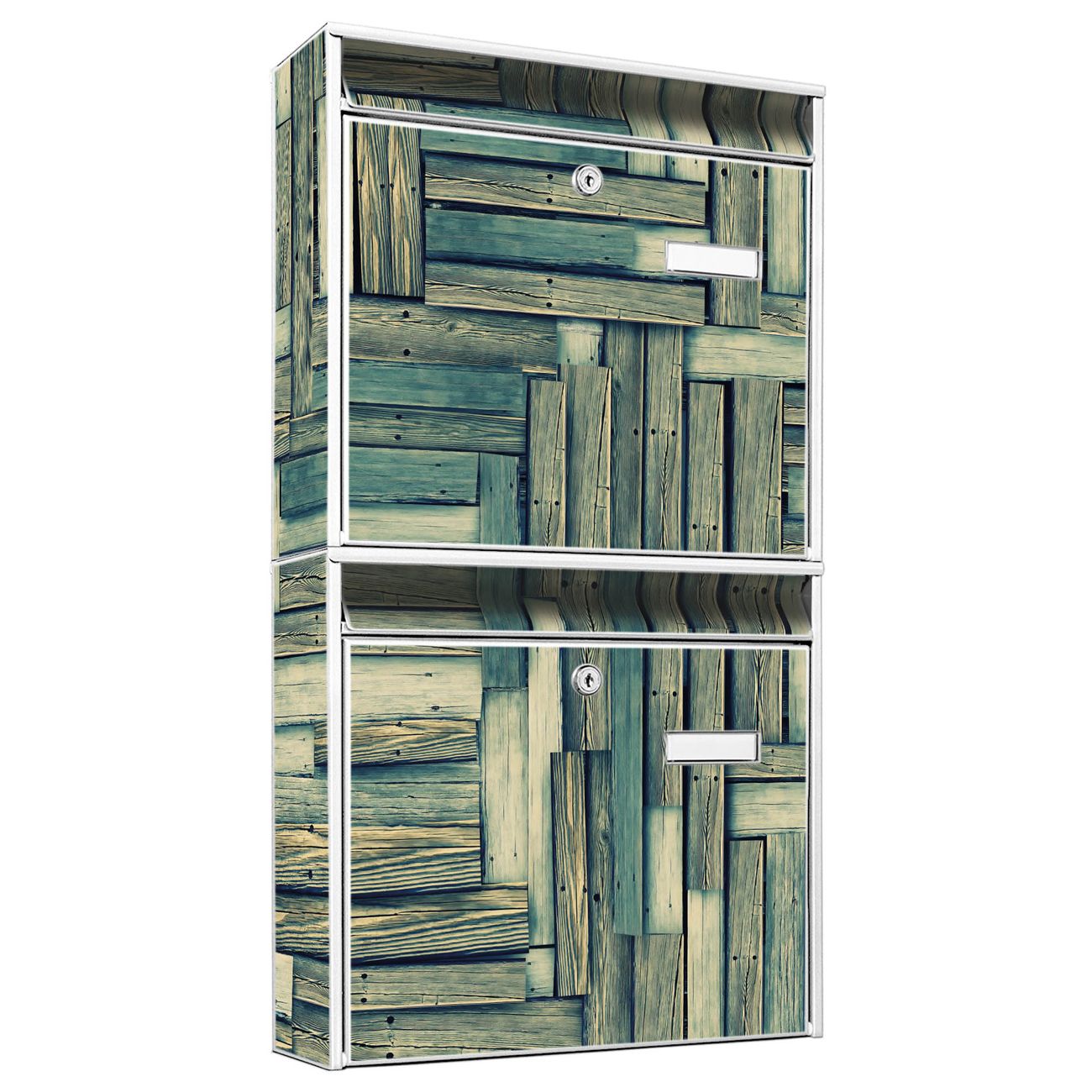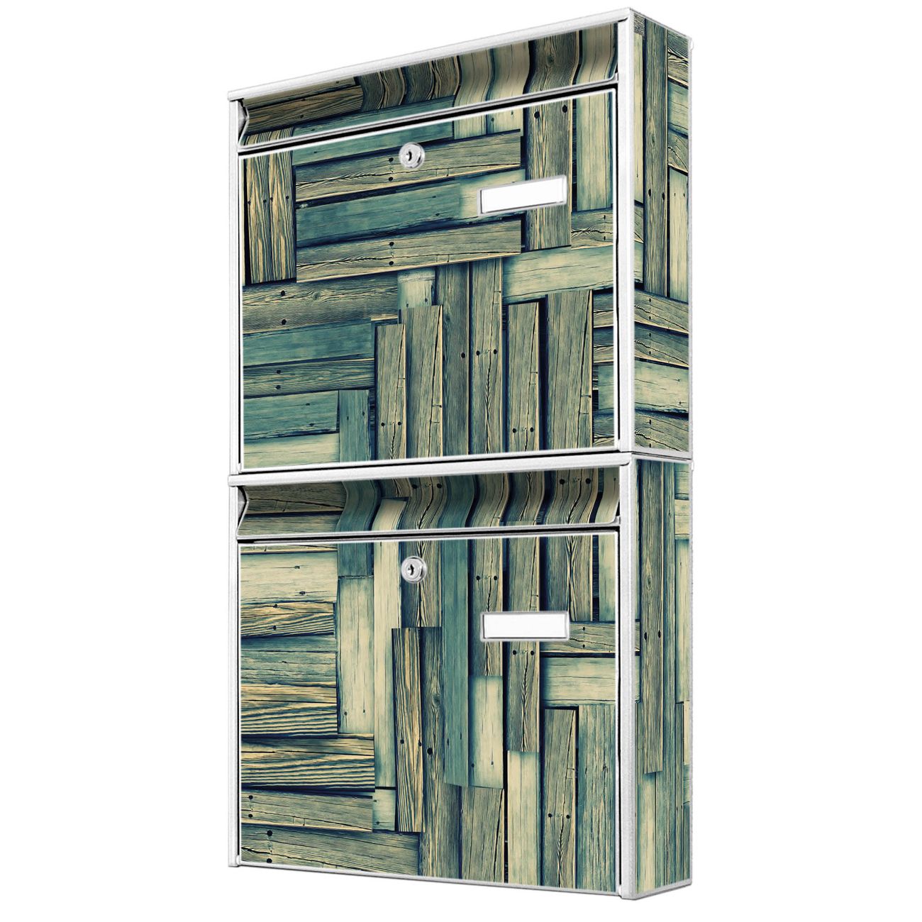 FUNKTION: Die Burg-Wächter Briefkastenanlage mit Motiv Grüne Planken bietet Ihnen ausreichend Fassungsvermögen um auch A4 und C4 Sendungen zu empfangen. Das integrierte Namensschild lässt sich individuell beschriften. Wählen Sie aus den Grundfarben weiß, silber und schwarz. DESIGN: Die 2 Briefkästen haben ein ansprechendes und zeitloses Design, ohne dabei auf Funktionalität zu verzichten. Das Material ist sehr stabil, wetterfest und rostfrei. Durch das Motiv Grüne Planken werden die Postkästen zu einem Blickfang. DETAILS: Die Postkästen bestehen aus verzinktem Stahl der zusätzlich mit Klarlack versiegelt wurde. Die Kästen sind gesamt 64,5cm hoch, 36,2cm breit und 10cm tief. Das Motiv besteht aus einer wetter- und UV-festen Folie, die Ihren Briefkasten zusätzlich vor Kratzern schützt. Die Postkästen werden mit Montagematerial, je einem Namensschild und je zwei Schlüsseln geliefert. NUTZEN: Das Briefkastenset eignet sich für die Wandmontage, die Größe bietet genügend Platz für Sendungen aller Art. Das zeitlose Design sowie die stabile Bauart bieten Ihnen einen treuen Begleiter für Ihre Post. BANJADO:
