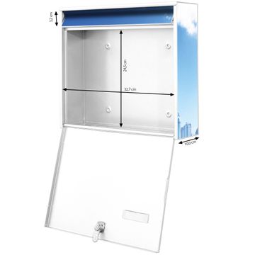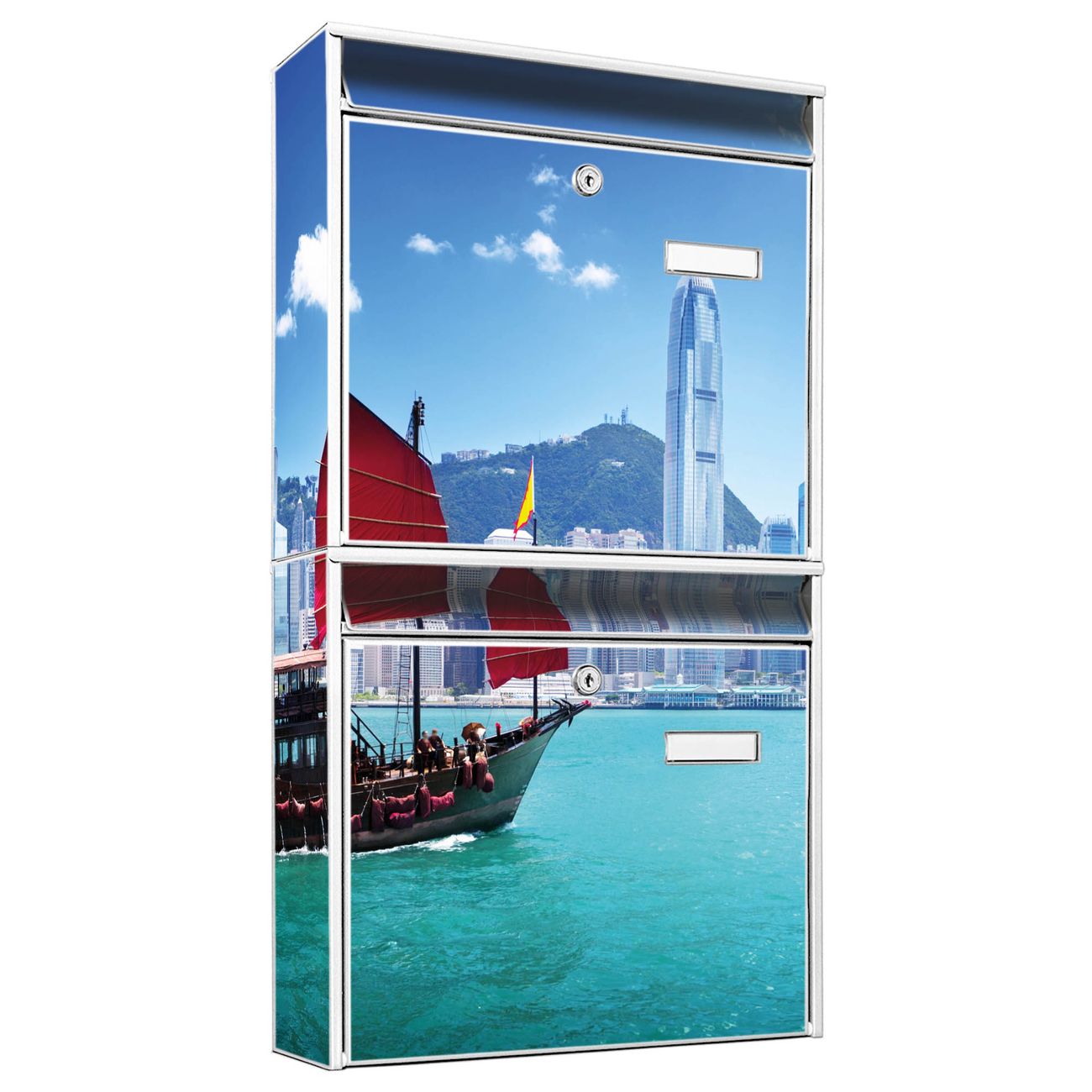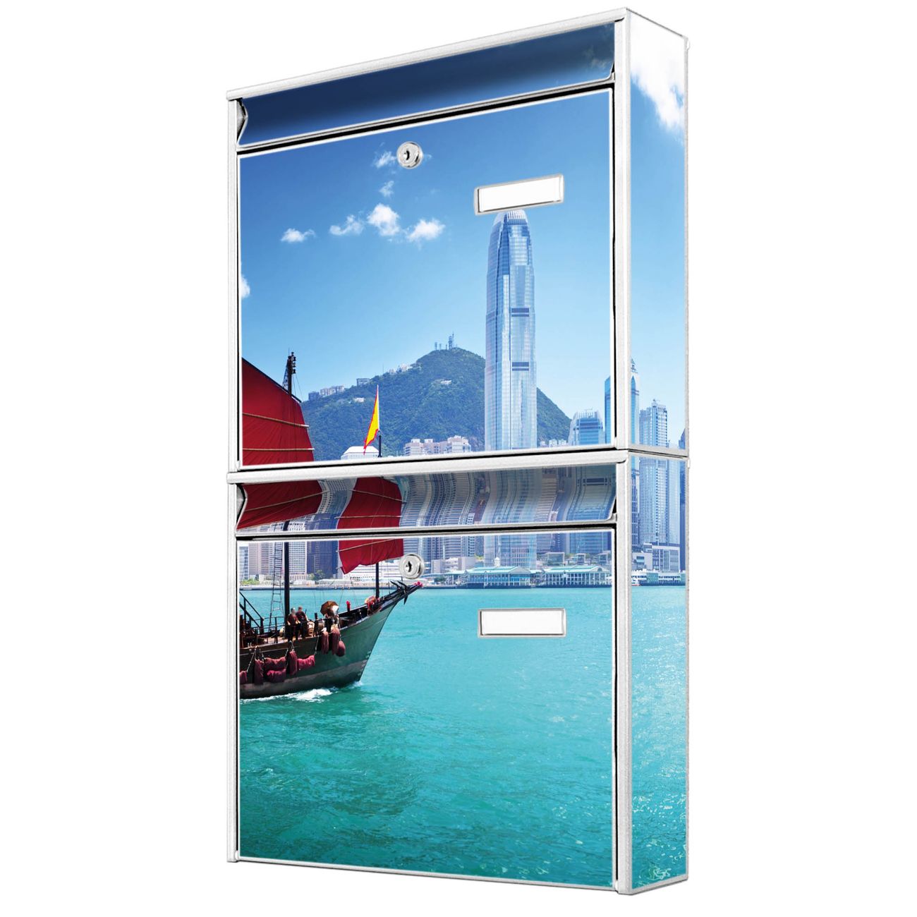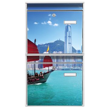 FUNKTION: Die Burg-Wächter Briefkastenanlage mit Motiv Hong Kong bietet Ihnen ausreichend Fassungsvermögen um auch A4 und C4 Sendungen zu empfangen. Das integrierte Namensschild lässt sich individuell beschriften. Wählen Sie aus den Grundfarben weiß, silber und schwarz. DESIGN: Die 2 Briefkästen haben ein ansprechendes und zeitloses Design, ohne dabei auf Funktionalität zu verzichten. Das Material ist sehr stabil, wetterfest und rostfrei. Durch das Motiv Hong Kong werden die Postkästen zu einem Blickfang. DETAILS: Die Postkästen bestehen aus verzinktem Stahl der zusätzlich mit Klarlack versiegelt wurde. Die Kästen sind gesamt 64,5cm hoch, 36,2cm breit und 10cm tief. Das Motiv besteht aus einer wetter- und UV-festen Folie, die Ihren Briefkasten zusätzlich vor Kratzern schützt. Die Postkästen werden mit Montagematerial, je einem Namensschild und je zwei Schlüsseln geliefert. NUTZEN: Das Briefkastenset eignet sich für die Wandmontage, die Größe bietet genügend Platz für Sendungen aller Art. Das zeitlose Design sowie die stabile Bauart bieten Ihnen einen treuen Begleiter für Ihre Post. BANJADO:
