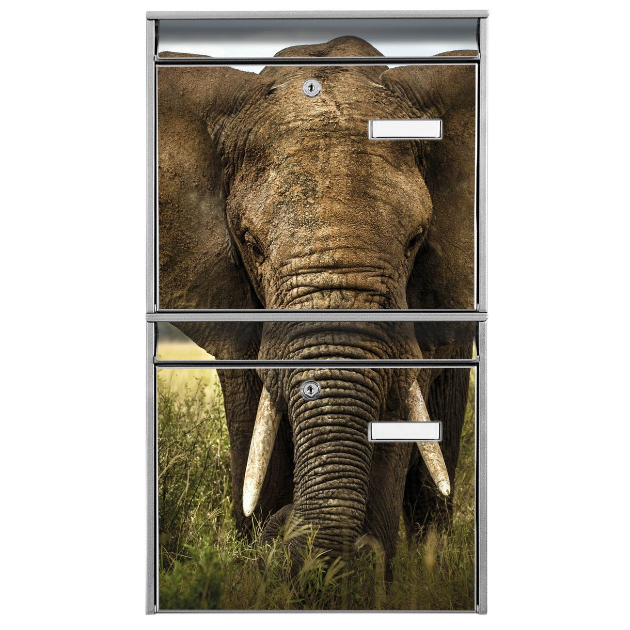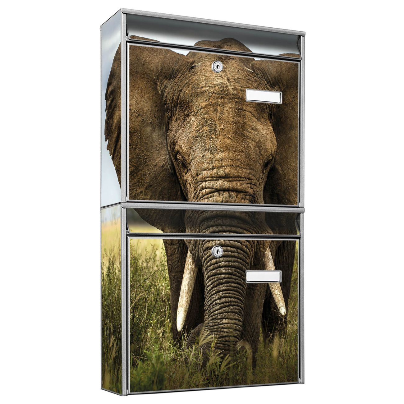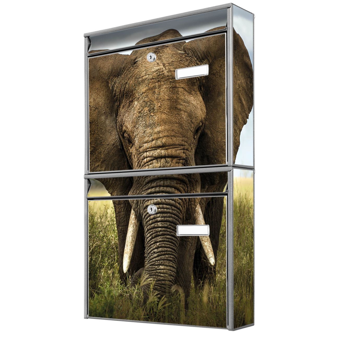 FUNKTION: Die Burg-Wächter Briefkastenanlage mit Motiv Korbinian bietet Ihnen ausreichend Fassungsvermögen um auch A4 und C4 Sendungen zu empfangen. Das integrierte Namensschild lässt sich individuell beschriften. Wählen Sie aus den Grundfarben weiß, silber und schwarz. DESIGN: Die 2 Briefkästen haben ein ansprechendes und zeitloses Design, ohne dabei auf Funktionalität zu verzichten. Das Material ist sehr stabil, wetterfest und rostfrei. Durch das Motiv Korbinian werden die Postkästen zu einem Blickfang. DETAILS: Die Postkästen bestehen aus verzinktem Stahl der zusätzlich mit Klarlack versiegelt wurde. Die Kästen sind gesamt 64,5cm hoch, 36,2cm breit und 10cm tief. Das Motiv besteht aus einer wetter- und UV-festen Folie, die Ihren Briefkasten zusätzlich vor Kratzern schützt. Die Postkästen werden mit Montagematerial, je einem Namensschild und je zwei Schlüsseln geliefert. NUTZEN: Das Briefkastenset eignet sich für die Wandmontage, die Größe bietet genügend Platz für Sendungen aller Art. Das zeitlose Design sowie die stabile Bauart bieten Ihnen einen treuen Begleiter für Ihre Post. BANJADO: