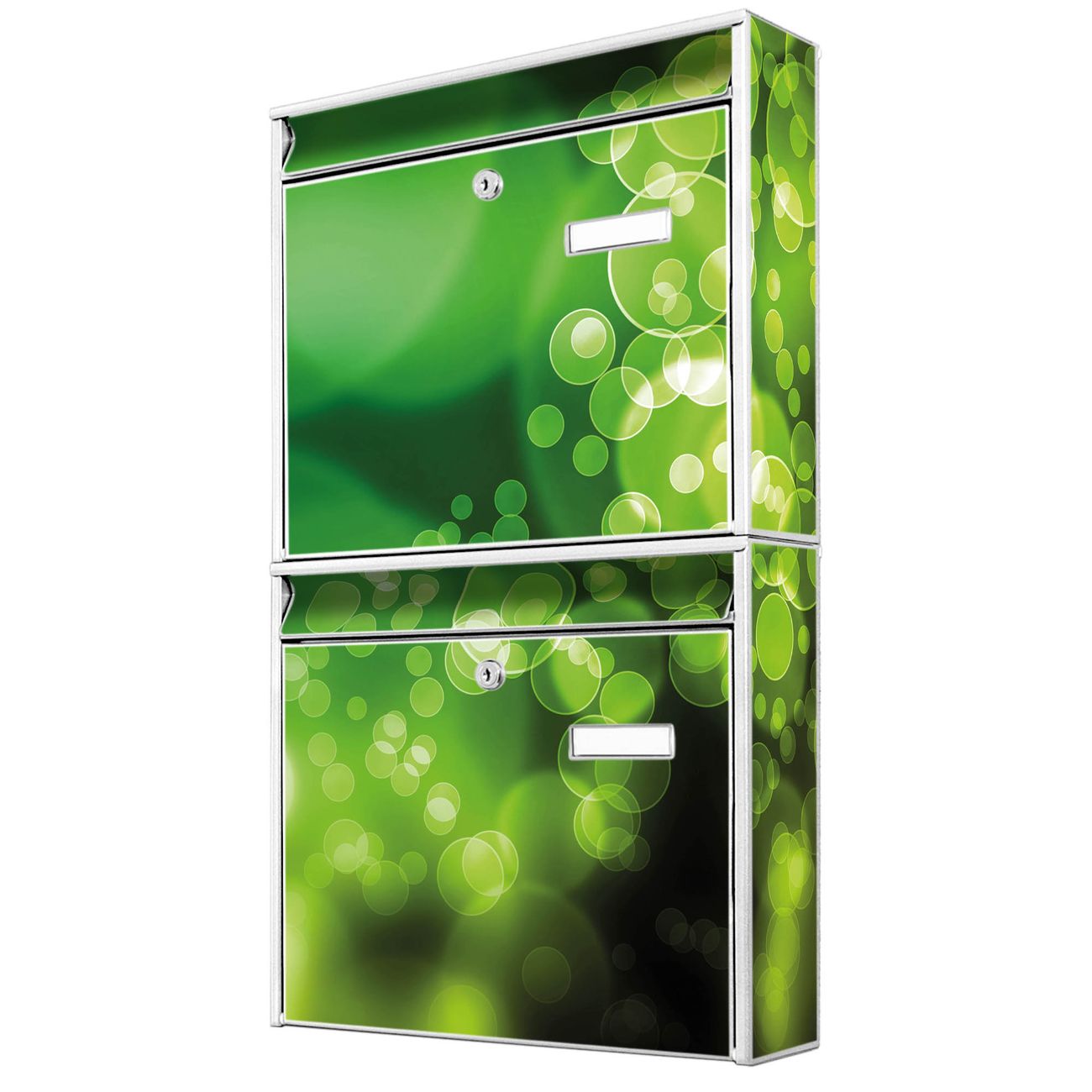 FUNKTION: Die Burg-Wächter Briefkastenanlage mit Motiv Lichtspiel bietet Ihnen ausreichend Fassungsvermögen um auch A4 und C4 Sendungen zu empfangen. Das integrierte Namensschild lässt sich individuell beschriften. Wählen Sie aus den Grundfarben weiß, silber und schwarz. DESIGN: Die 2 Briefkästen haben ein ansprechendes und zeitloses Design, ohne dabei auf Funktionalität zu verzichten. Das Material ist sehr stabil, wetterfest und rostfrei. Durch das Motiv Lichtspiel werden die Postkästen zu einem Blickfang. DETAILS: Die Postkästen bestehen aus verzinktem Stahl der zusätzlich mit Klarlack versiegelt wurde. Die Kästen sind gesamt 64,5cm hoch, 36,2cm breit und 10cm tief. Das Motiv besteht aus einer wetter- und UV-festen Folie, die Ihren Briefkasten zusätzlich vor Kratzern schützt. Die Postkästen werden mit Montagematerial, je einem Namensschild und je zwei Schlüsseln geliefert. NUTZEN: Das Briefkastenset eignet sich für die Wandmontage, die Größe bietet genügend Platz für Sendungen aller Art. Das zeitlose Design sowie die stabile Bauart bieten Ihnen einen treuen Begleiter für Ihre Post. BANJADO: