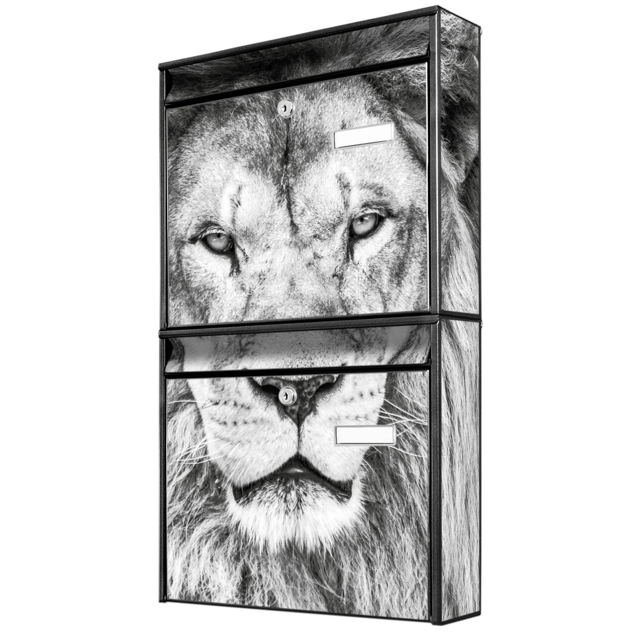 FUNKTION: Die Burg-Wächter Briefkastenanlage mit Motiv Ludwig bietet Ihnen ausreichend Fassungsvermögen um auch A4 und C4 Sendungen zu empfangen. Das integrierte Namensschild lässt sich individuell beschriften. Wählen Sie aus den Grundfarben weiß, silber und schwarz. DESIGN: Die 2 Briefkästen haben ein ansprechendes und zeitloses Design, ohne dabei auf Funktionalität zu verzichten. Das Material ist sehr stabil, wetterfest und rostfrei. Durch das Motiv Ludwig werden die Postkästen zu einem Blickfang. DETAILS: Die Postkästen bestehen aus verzinktem Stahl der zusätzlich mit Klarlack versiegelt wurde. Die Kästen sind gesamt 64,5cm hoch, 36,2cm breit und 10cm tief. Das Motiv besteht aus einer wetter- und UV-festen Folie, die Ihren Briefkasten zusätzlich vor Kratzern schützt. Die Postkästen werden mit Montagematerial, je einem Namensschild und je zwei Schlüsseln geliefert. NUTZEN: Das Briefkastenset eignet sich für die Wandmontage, die Größe bietet genügend Platz für Sendungen aller Art. Das zeitlose Design sowie die stabile Bauart bieten Ihnen einen treuen Begleiter für Ihre Post. BANJADO: