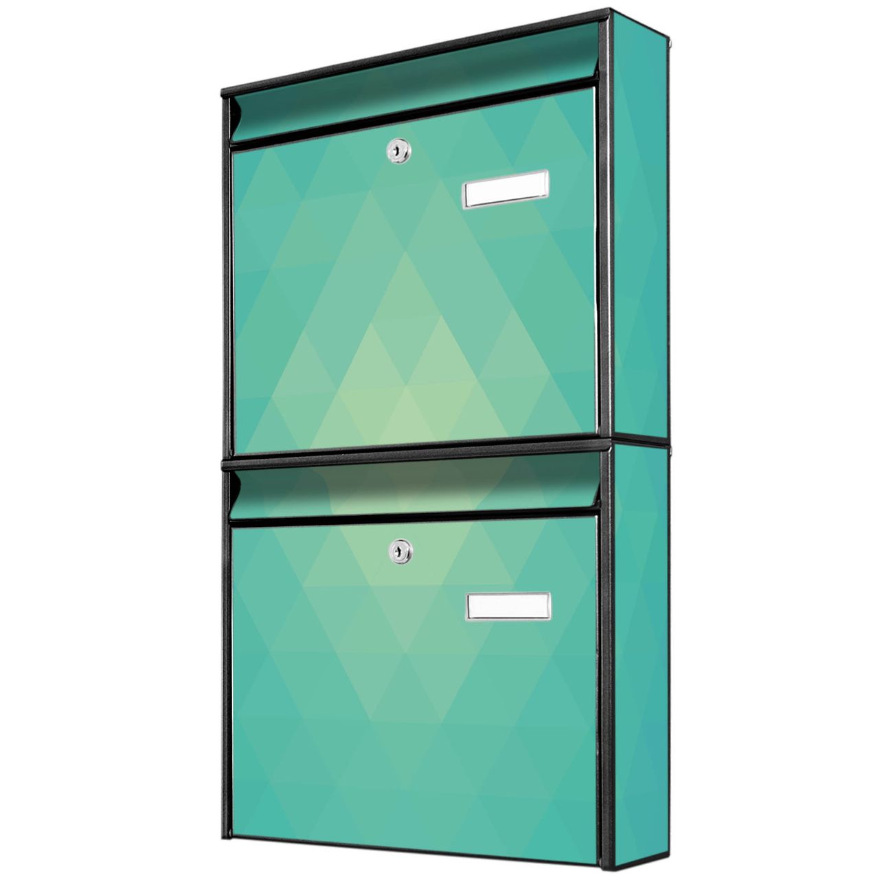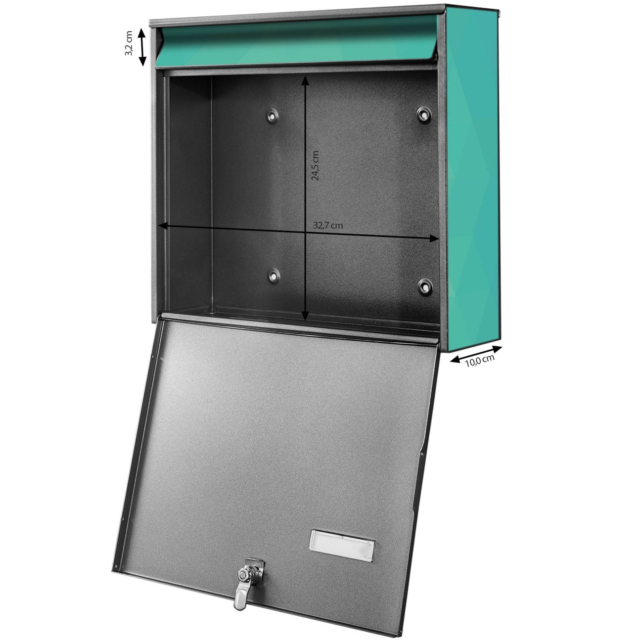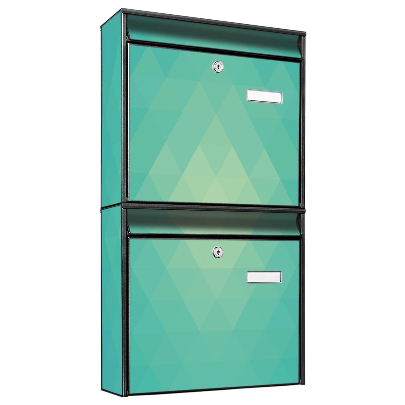 FUNKTION: Die Burg-Wächter Briefkastenanlage mit Motiv Meeresblau bietet Ihnen ausreichend Fassungsvermögen um auch A4 und C4 Sendungen zu empfangen. Das integrierte Namensschild lässt sich individuell beschriften. Wählen Sie aus den Grundfarben weiß, silber und schwarz. DESIGN: Die 2 Briefkästen haben ein ansprechendes und zeitloses Design, ohne dabei auf Funktionalität zu verzichten. Das Material ist sehr stabil, wetterfest und rostfrei. Durch das Motiv Meeresblau werden die Postkästen zu einem Blickfang. DETAILS: Die Postkästen bestehen aus verzinktem Stahl der zusätzlich mit Klarlack versiegelt wurde. Die Kästen sind gesamt 64,5cm hoch, 36,2cm breit und 10cm tief. Das Motiv besteht aus einer wetter- und UV-festen Folie, die Ihren Briefkasten zusätzlich vor Kratzern schützt. Die Postkästen werden mit Montagematerial, je einem Namensschild und je zwei Schlüsseln geliefert. NUTZEN: Das Briefkastenset eignet sich für die Wandmontage, die Größe bietet genügend Platz für Sendungen aller Art. Das zeitlose Design sowie die stabile Bauart bieten Ihnen einen treuen Begleiter für Ihre Post. BANJADO: