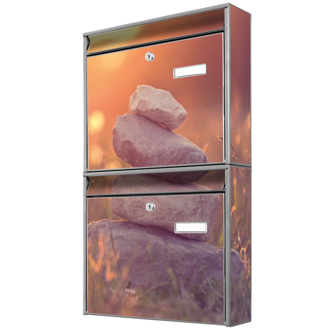 FUNKTION: Die Burg-Wächter Briefkastenanlage mit Motiv Mein Ort bietet Ihnen ausreichend Fassungsvermögen um auch A4 und C4 Sendungen zu empfangen. Das integrierte Namensschild lässt sich individuell beschriften. Wählen Sie aus den Grundfarben weiß, silber und schwarz. DESIGN: Die 2 Briefkästen haben ein ansprechendes und zeitloses Design, ohne dabei auf Funktionalität zu verzichten. Das Material ist sehr stabil, wetterfest und rostfrei. Durch das Motiv Mein Ort werden die Postkästen zu einem Blickfang. DETAILS: Die Postkästen bestehen aus verzinktem Stahl der zusätzlich mit Klarlack versiegelt wurde. Die Kästen sind gesamt 64,5cm hoch, 36,2cm breit und 10cm tief. Das Motiv besteht aus einer wetter- und UV-festen Folie, die Ihren Briefkasten zusätzlich vor Kratzern schützt. Die Postkästen werden mit Montagematerial, je einem Namensschild und je zwei Schlüsseln geliefert. NUTZEN: Das Briefkastenset eignet sich für die Wandmontage, die Größe bietet genügend Platz für Sendungen aller Art. Das zeitlose Design sowie die stabile Bauart bieten Ihnen einen treuen Begleiter für Ihre Post. BANJADO: