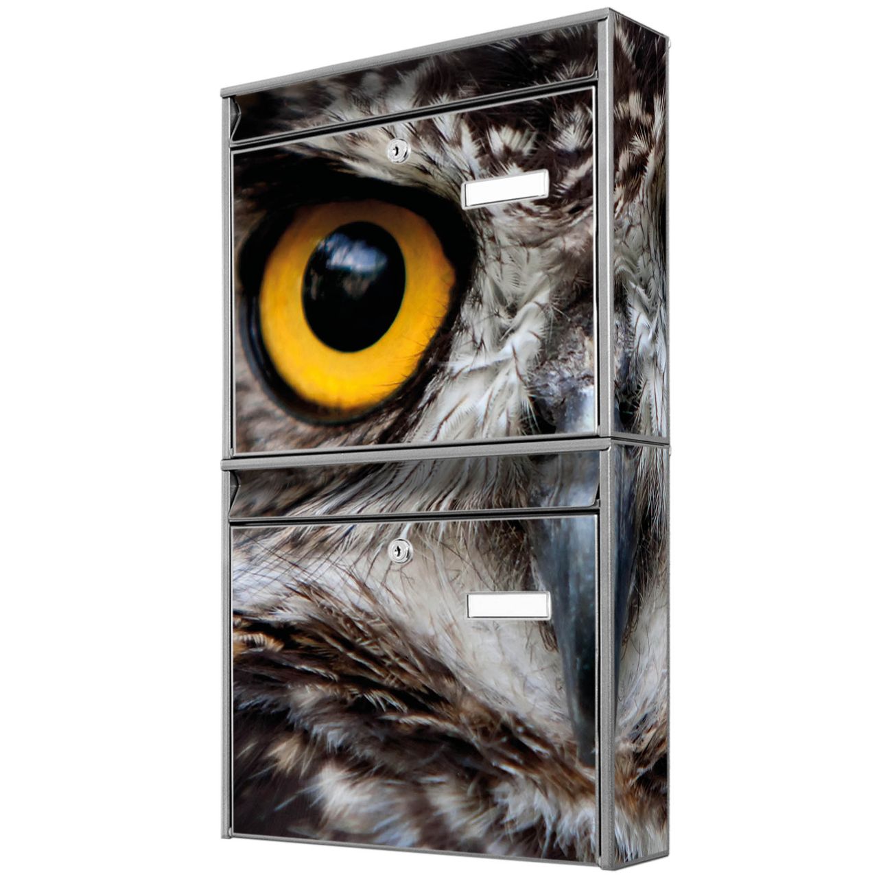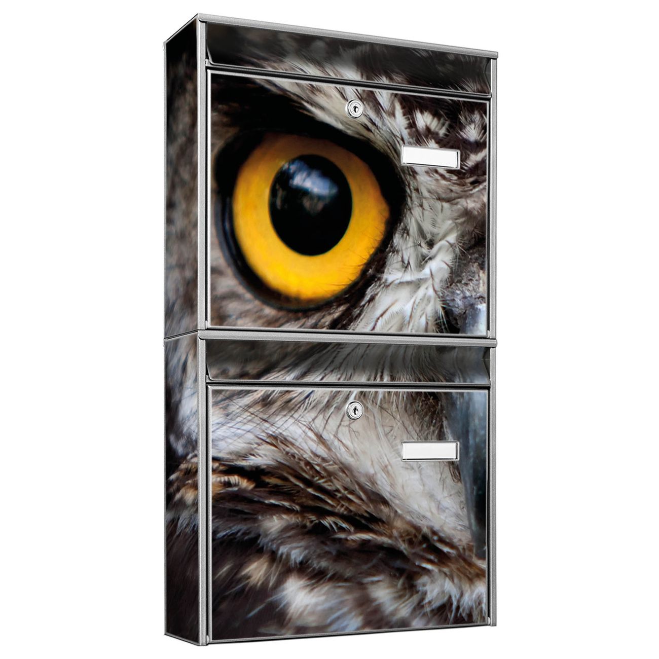 FUNKTION: Die Burg-Wächter Briefkastenanlage mit Motiv Monique bietet Ihnen ausreichend Fassungsvermögen um auch A4 und C4 Sendungen zu empfangen. Das integrierte Namensschild lässt sich individuell beschriften. Wählen Sie aus den Grundfarben weiß, silber und schwarz. DESIGN: Die 2 Briefkästen haben ein ansprechendes und zeitloses Design, ohne dabei auf Funktionalität zu verzichten. Das Material ist sehr stabil, wetterfest und rostfrei. Durch das Motiv Monique werden die Postkästen zu einem Blickfang. DETAILS: Die Postkästen bestehen aus verzinktem Stahl der zusätzlich mit Klarlack versiegelt wurde. Die Kästen sind gesamt 64,5cm hoch, 36,2cm breit und 10cm tief. Das Motiv besteht aus einer wetter- und UV-festen Folie, die Ihren Briefkasten zusätzlich vor Kratzern schützt. Die Postkästen werden mit Montagematerial, je einem Namensschild und je zwei Schlüsseln geliefert. NUTZEN: Das Briefkastenset eignet sich für die Wandmontage, die Größe bietet genügend Platz für Sendungen aller Art. Das zeitlose Design sowie die stabile Bauart bieten Ihnen einen treuen Begleiter für Ihre Post. BANJADO:
