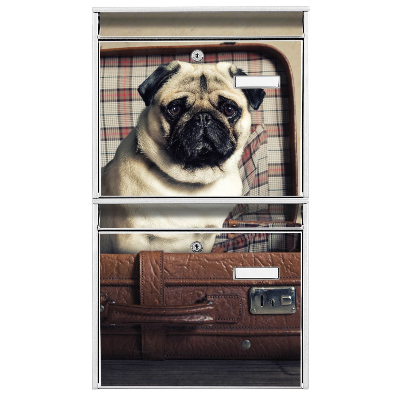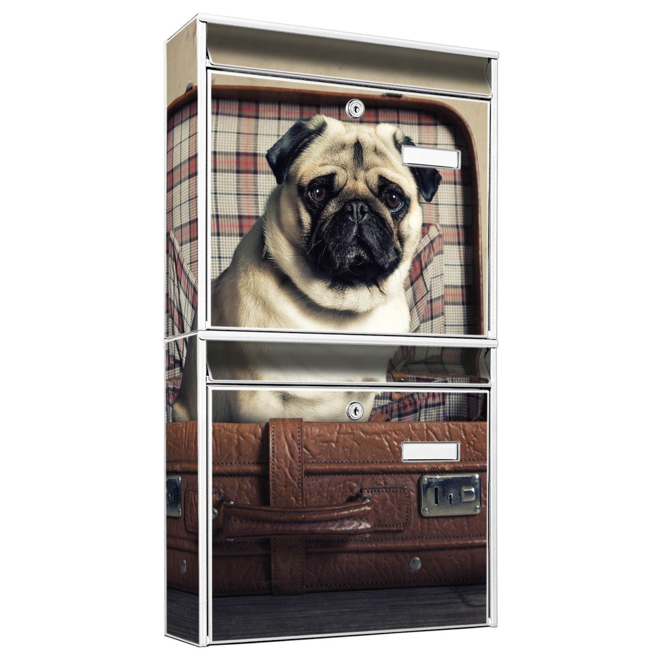 Doppelbriefkasten hoch Mops im Koffer