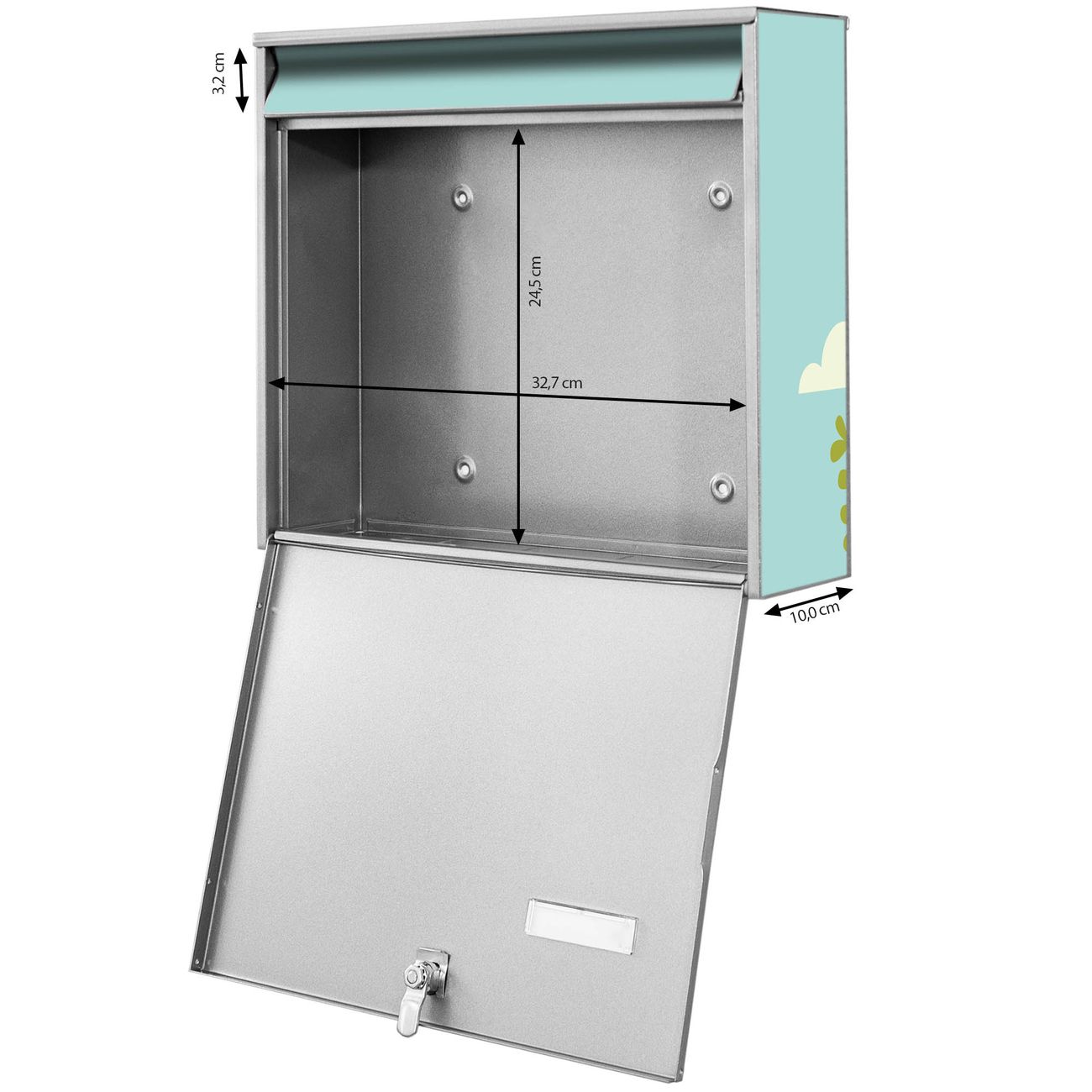 - je Briefschlitz: 34,5 x 3,8cm (B x H)