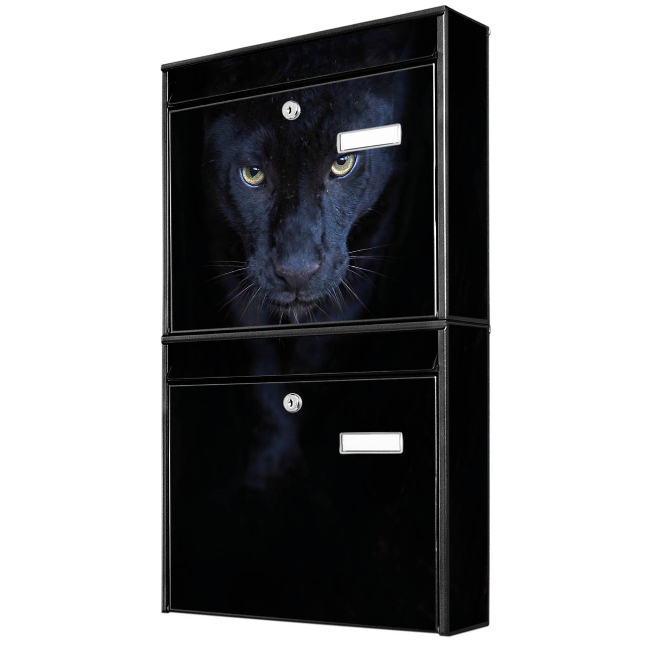 FUNKTION: Die Burg-Wächter Briefkastenanlage mit Motiv Nora bietet Ihnen ausreichend Fassungsvermögen um auch A4 und C4 Sendungen zu empfangen. Das integrierte Namensschild lässt sich individuell beschriften. Wählen Sie aus den Grundfarben weiß, silber und schwarz. DESIGN: Die 2 Briefkästen haben ein ansprechendes und zeitloses Design, ohne dabei auf Funktionalität zu verzichten. Das Material ist sehr stabil, wetterfest und rostfrei. Durch das Motiv Nora werden die Postkästen zu einem Blickfang. DETAILS: Die Postkästen bestehen aus verzinktem Stahl der zusätzlich mit Klarlack versiegelt wurde. Die Kästen sind gesamt 64,5cm hoch, 36,2cm breit und 10cm tief. Das Motiv besteht aus einer wetter- und UV-festen Folie, die Ihren Briefkasten zusätzlich vor Kratzern schützt. Die Postkästen werden mit Montagematerial, je einem Namensschild und je zwei Schlüsseln geliefert. NUTZEN: Das Briefkastenset eignet sich für die Wandmontage, die Größe bietet genügend Platz für Sendungen aller Art. Das zeitlose Design sowie die stabile Bauart bieten Ihnen einen treuen Begleiter für Ihre Post. BANJADO: