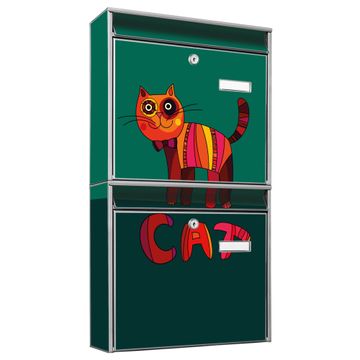 FUNKTION: Die Burg-Wächter Briefkastenanlage mit Motiv Orange Katze bietet Ihnen ausreichend Fassungsvermögen um auch A4 und C4 Sendungen zu empfangen. Das integrierte Namensschild lässt sich individuell beschriften. Wählen Sie aus den Grundfarben weiß, silber und schwarz. DESIGN: Die 2 Briefkästen haben ein ansprechendes und zeitloses Design, ohne dabei auf Funktionalität zu verzichten. Das Material ist sehr stabil, wetterfest und rostfrei. Durch das Motiv Orange Katze werden die Postkästen zu einem Blickfang. DETAILS: Die Postkästen bestehen aus verzinktem Stahl der zusätzlich mit Klarlack versiegelt wurde. Die Kästen sind gesamt 64,5cm hoch, 36,2cm breit und 10cm tief. Das Motiv besteht aus einer wetter- und UV-festen Folie, die Ihren Briefkasten zusätzlich vor Kratzern schützt. Die Postkästen werden mit Montagematerial, je einem Namensschild und je zwei Schlüsseln geliefert. NUTZEN: Das Briefkastenset eignet sich für die Wandmontage, die Größe bietet genügend Platz für Sendungen aller Art. Das zeitlose Design sowie die stabile Bauart bieten Ihnen einen treuen Begleiter für Ihre Post. BANJADO: