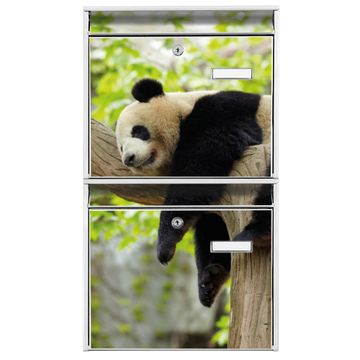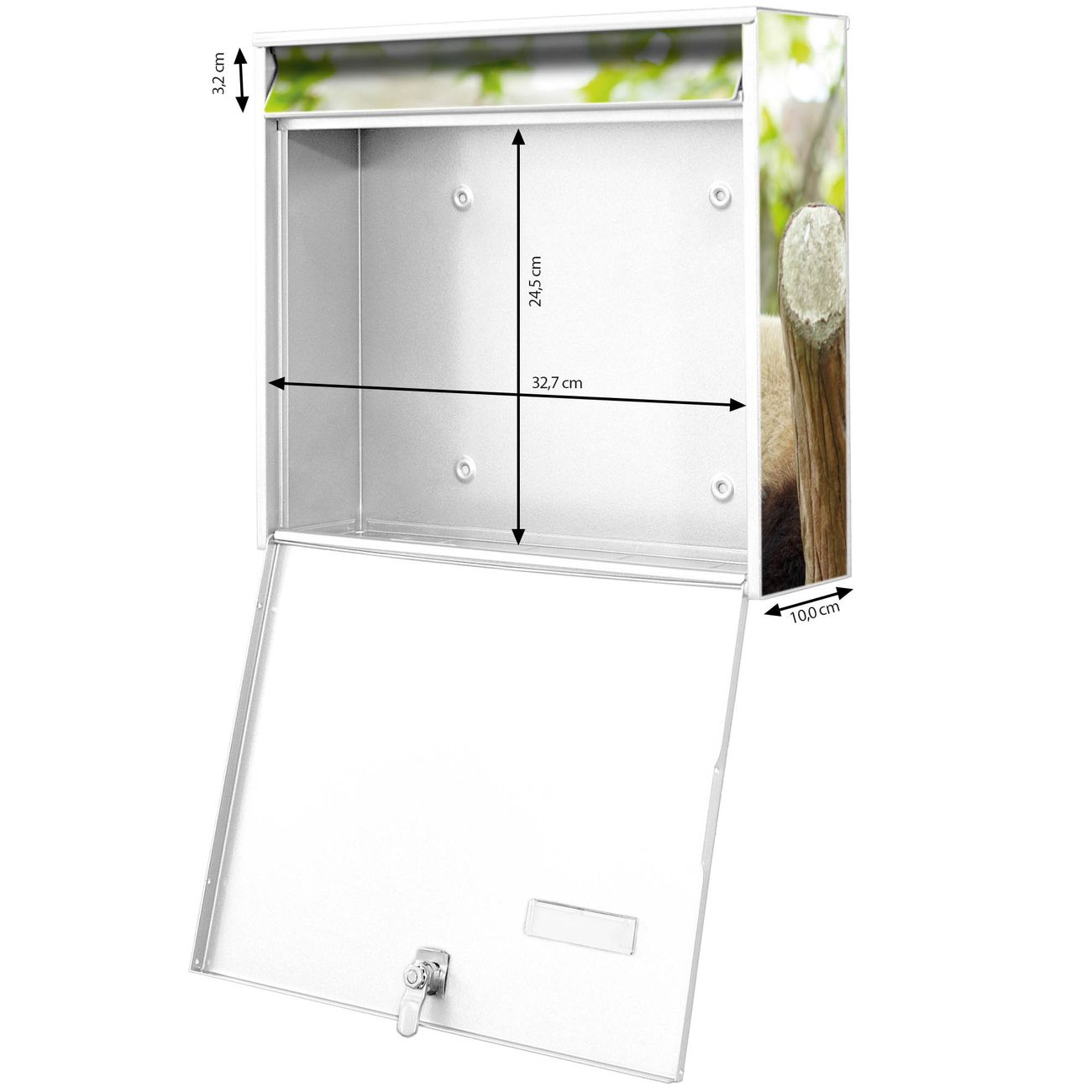 FUNKTION: Die Burg-Wächter Briefkastenanlage mit Motiv Panda bietet Ihnen ausreichend Fassungsvermögen um auch A4 und C4 Sendungen zu empfangen. Das integrierte Namensschild lässt sich individuell beschriften. Wählen Sie aus den Grundfarben weiß, silber und schwarz. DESIGN: Die 2 Briefkästen haben ein ansprechendes und zeitloses Design, ohne dabei auf Funktionalität zu verzichten. Das Material ist sehr stabil, wetterfest und rostfrei. Durch das Motiv Panda werden die Postkästen zu einem Blickfang. DETAILS: Die Postkästen bestehen aus verzinktem Stahl der zusätzlich mit Klarlack versiegelt wurde. Die Kästen sind gesamt 64,5cm hoch, 36,2cm breit und 10cm tief. Das Motiv besteht aus einer wetter- und UV-festen Folie, die Ihren Briefkasten zusätzlich vor Kratzern schützt. Die Postkästen werden mit Montagematerial, je einem Namensschild und je zwei Schlüsseln geliefert. NUTZEN: Das Briefkastenset eignet sich für die Wandmontage, die Größe bietet genügend Platz für Sendungen aller Art. Das zeitlose Design sowie die stabile Bauart bieten Ihnen einen treuen Begleiter für Ihre Post. BANJADO: