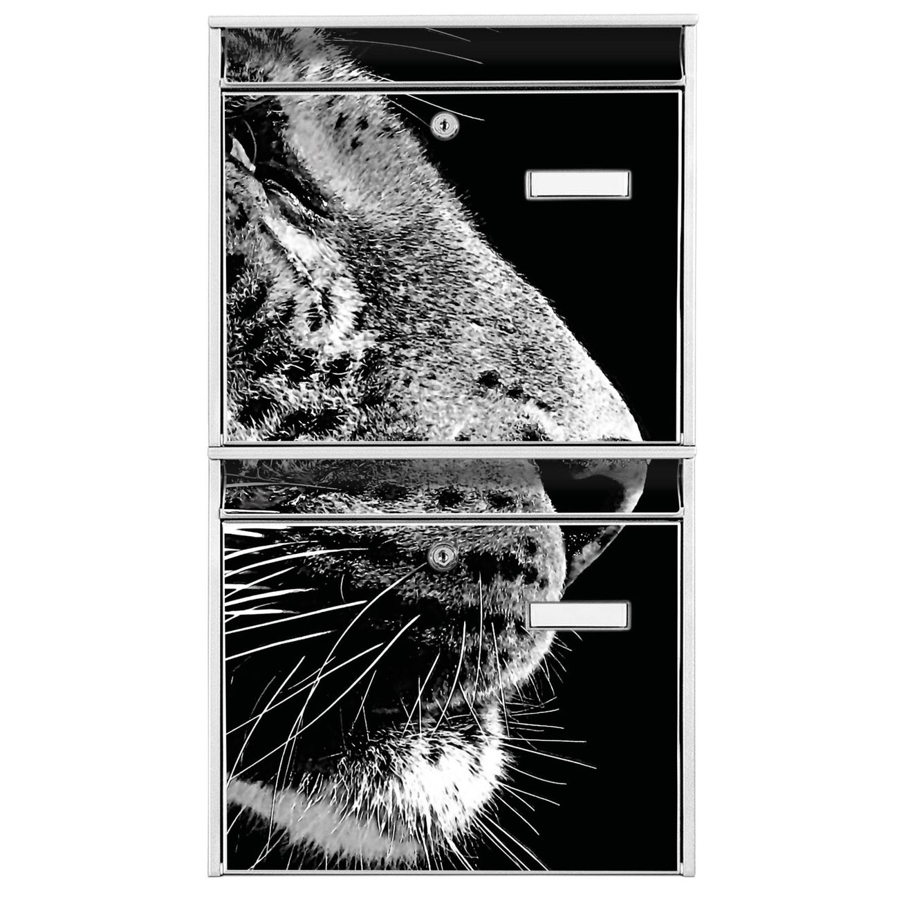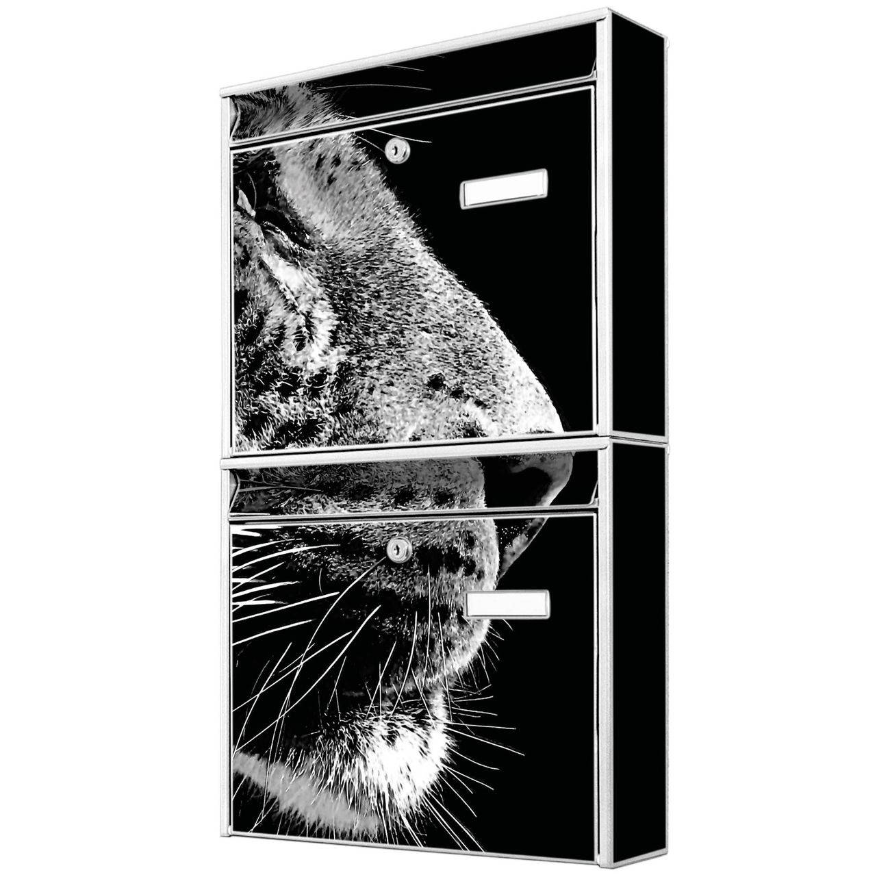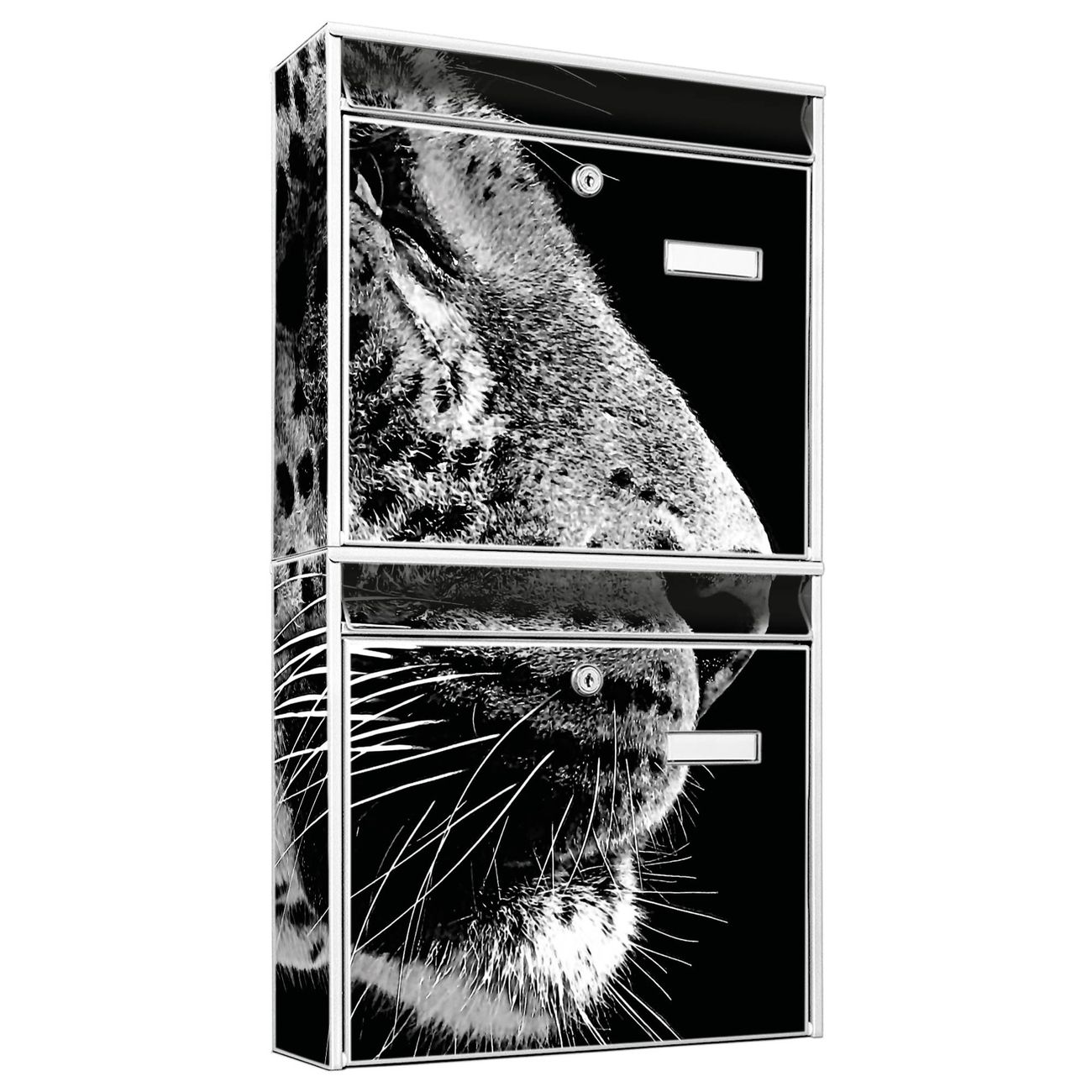 FUNKTION: Die Burg-Wächter Briefkastenanlage mit Motiv Pauline bietet Ihnen ausreichend Fassungsvermögen um auch A4 und C4 Sendungen zu empfangen. Das integrierte Namensschild lässt sich individuell beschriften. Wählen Sie aus den Grundfarben weiß, silber und schwarz. DESIGN: Die 2 Briefkästen haben ein ansprechendes und zeitloses Design, ohne dabei auf Funktionalität zu verzichten. Das Material ist sehr stabil, wetterfest und rostfrei. Durch das Motiv Pauline werden die Postkästen zu einem Blickfang. DETAILS: Die Postkästen bestehen aus verzinktem Stahl der zusätzlich mit Klarlack versiegelt wurde. Die Kästen sind gesamt 64,5cm hoch, 36,2cm breit und 10cm tief. Das Motiv besteht aus einer wetter- und UV-festen Folie, die Ihren Briefkasten zusätzlich vor Kratzern schützt. Die Postkästen werden mit Montagematerial, je einem Namensschild und je zwei Schlüsseln geliefert. NUTZEN: Das Briefkastenset eignet sich für die Wandmontage, die Größe bietet genügend Platz für Sendungen aller Art. Das zeitlose Design sowie die stabile Bauart bieten Ihnen einen treuen Begleiter für Ihre Post. BANJADO: