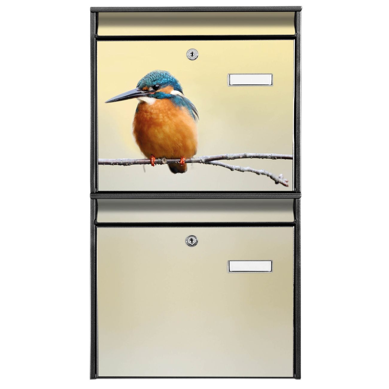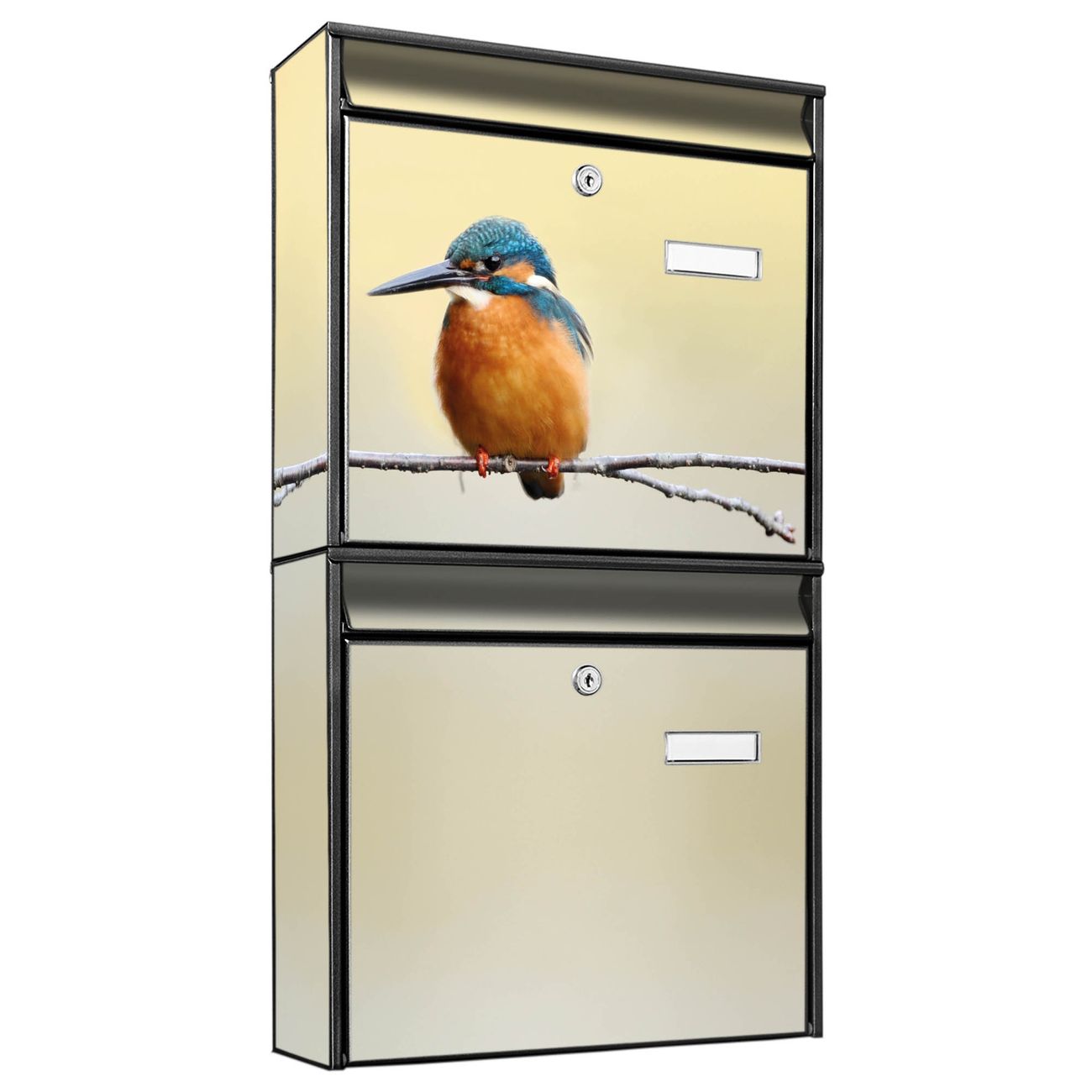 FUNKTION: Die Burg-Wächter Briefkastenanlage mit Motiv Pause bietet Ihnen ausreichend Fassungsvermögen um auch A4 und C4 Sendungen zu empfangen. Das integrierte Namensschild lässt sich individuell beschriften. Wählen Sie aus den Grundfarben weiß, silber und schwarz. DESIGN: Die 2 Briefkästen haben ein ansprechendes und zeitloses Design, ohne dabei auf Funktionalität zu verzichten. Das Material ist sehr stabil, wetterfest und rostfrei. Durch das Motiv Pause werden die Postkästen zu einem Blickfang. DETAILS: Die Postkästen bestehen aus verzinktem Stahl der zusätzlich mit Klarlack versiegelt wurde. Die Kästen sind gesamt 64,5cm hoch, 36,2cm breit und 10cm tief. Das Motiv besteht aus einer wetter- und UV-festen Folie, die Ihren Briefkasten zusätzlich vor Kratzern schützt. Die Postkästen werden mit Montagematerial, je einem Namensschild und je zwei Schlüsseln geliefert. NUTZEN: Das Briefkastenset eignet sich für die Wandmontage, die Größe bietet genügend Platz für Sendungen aller Art. Das zeitlose Design sowie die stabile Bauart bieten Ihnen einen treuen Begleiter für Ihre Post. BANJADO: