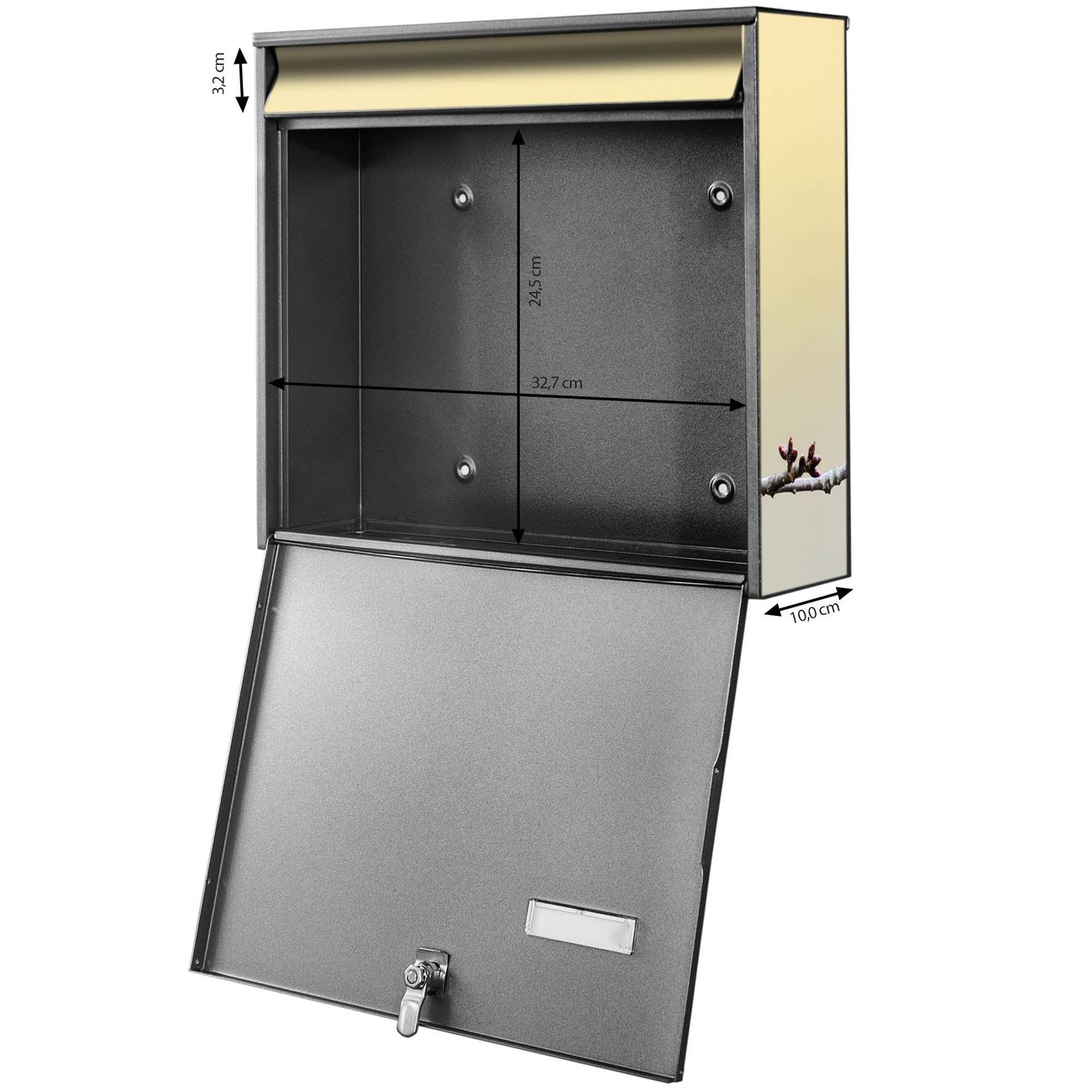 - je Briefschlitz: 34,5 x 3,8cm (B x H)