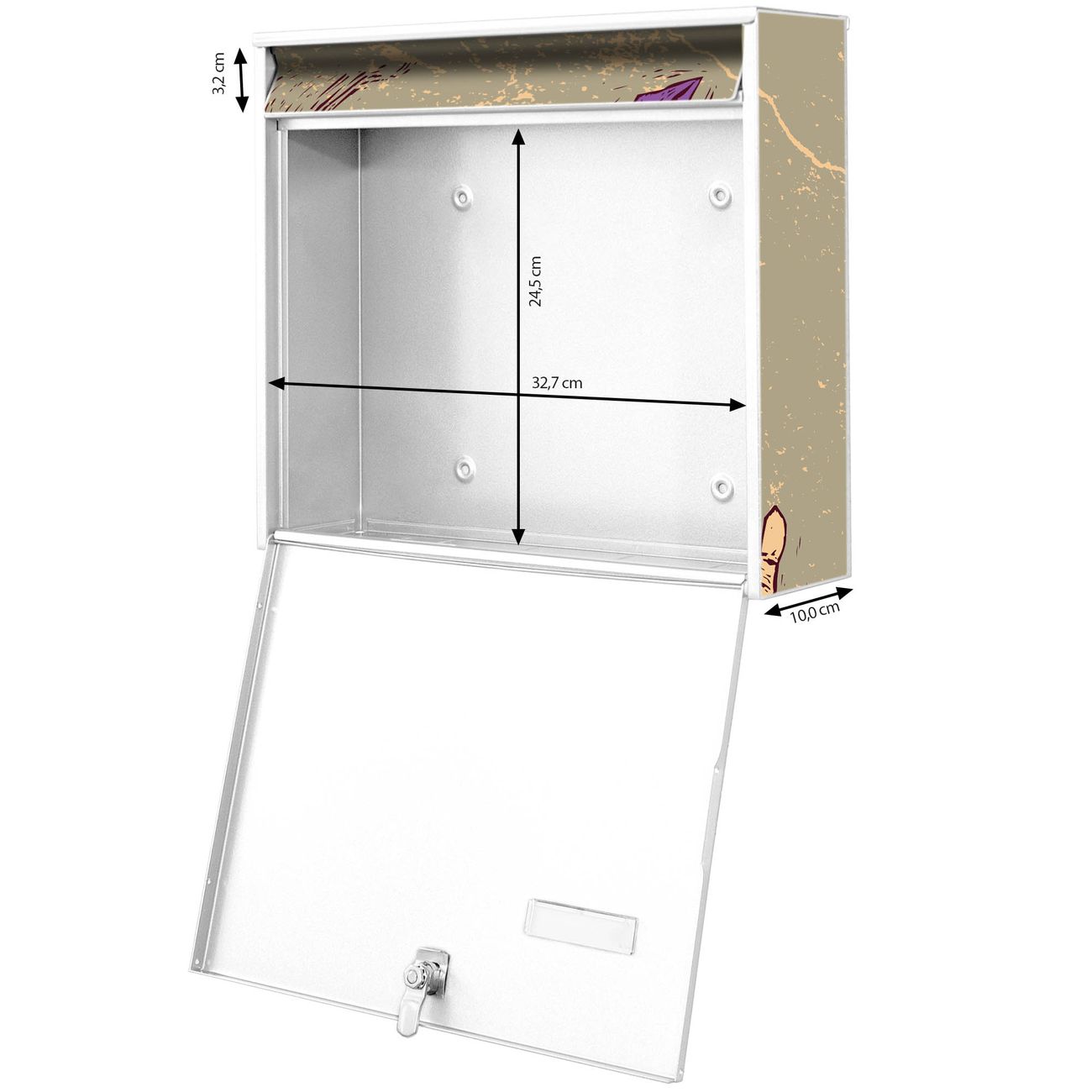 - je Briefschlitz: 34,5 x 3,8cm (B x H)