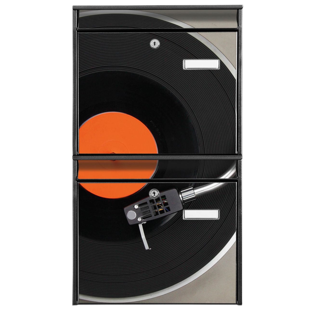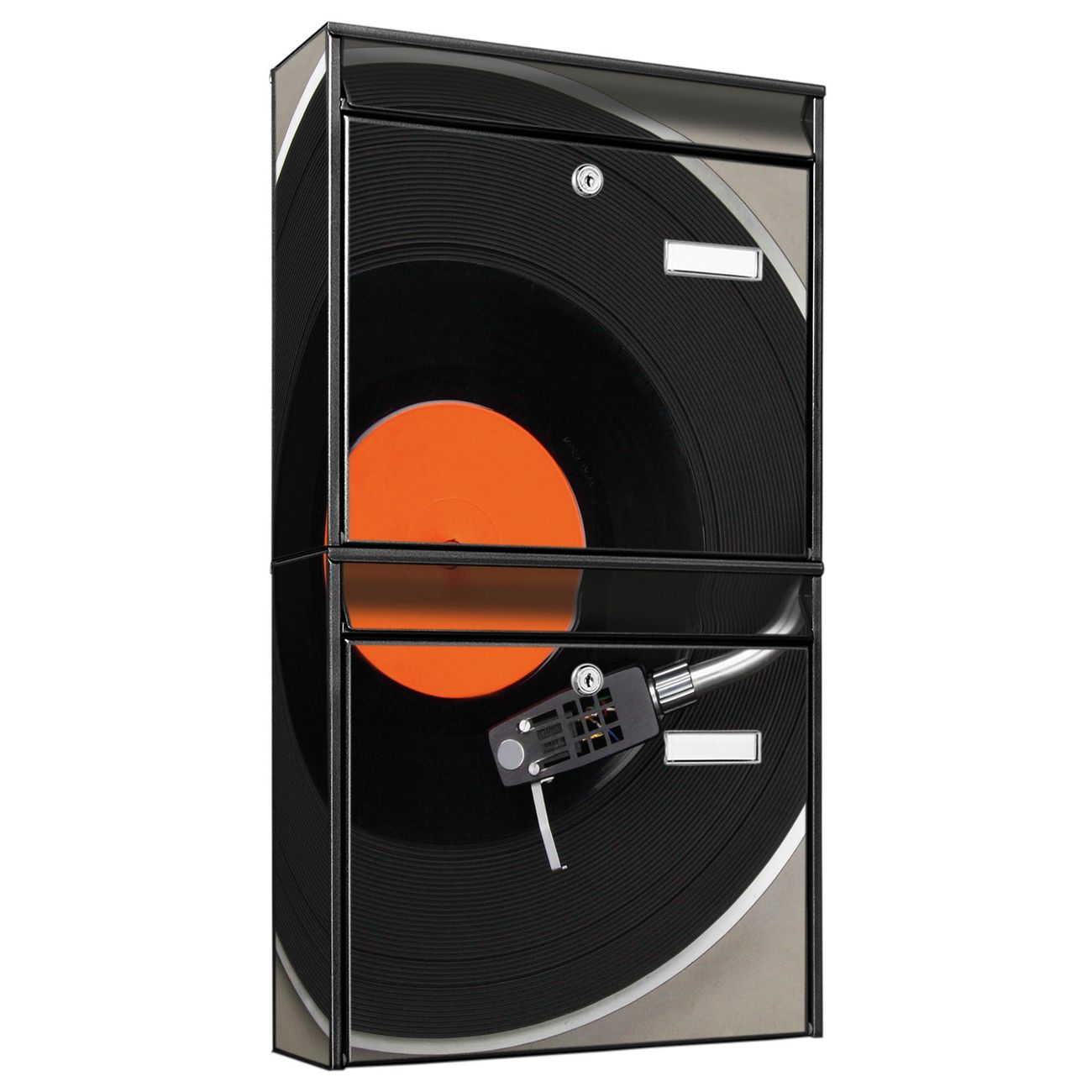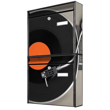 FUNKTION: Die Burg-Wächter Briefkastenanlage mit Motiv Plattenspieler bietet Ihnen ausreichend Fassungsvermögen um auch A4 und C4 Sendungen zu empfangen. Das integrierte Namensschild lässt sich individuell beschriften. Wählen Sie aus den Grundfarben weiß, silber und schwarz. DESIGN: Die 2 Briefkästen haben ein ansprechendes und zeitloses Design, ohne dabei auf Funktionalität zu verzichten. Das Material ist sehr stabil, wetterfest und rostfrei. Durch das Motiv Plattenspieler werden die Postkästen zu einem Blickfang. DETAILS: Die Postkästen bestehen aus verzinktem Stahl der zusätzlich mit Klarlack versiegelt wurde. Die Kästen sind gesamt 64,5cm hoch, 36,2cm breit und 10cm tief. Das Motiv besteht aus einer wetter- und UV-festen Folie, die Ihren Briefkasten zusätzlich vor Kratzern schützt. Die Postkästen werden mit Montagematerial, je einem Namensschild und je zwei Schlüsseln geliefert. NUTZEN: Das Briefkastenset eignet sich für die Wandmontage, die Größe bietet genügend Platz für Sendungen aller Art. Das zeitlose Design sowie die stabile Bauart bieten Ihnen einen treuen Begleiter für Ihre Post. BANJADO: