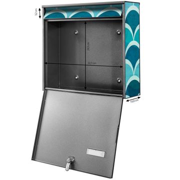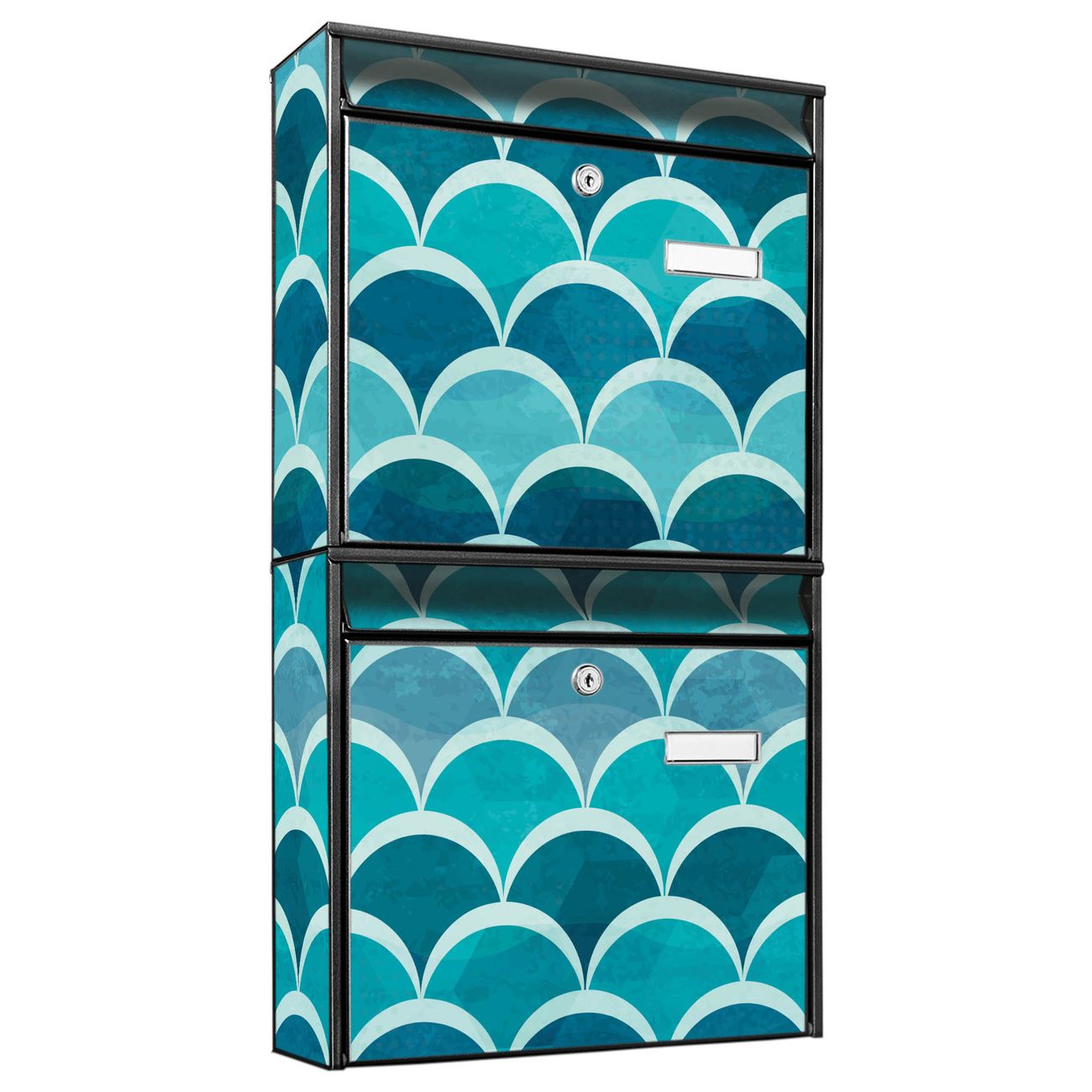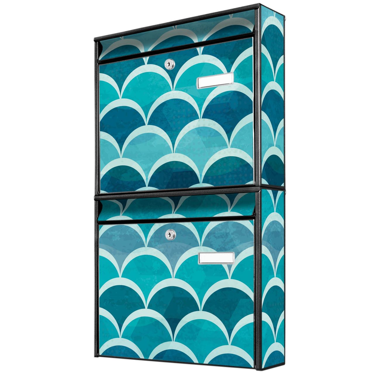FUNKTION: Die Burg-Wächter Briefkastenanlage mit Motiv Raue See bietet Ihnen ausreichend Fassungsvermögen um auch A4 und C4 Sendungen zu empfangen. Das integrierte Namensschild lässt sich individuell beschriften. Wählen Sie aus den Grundfarben weiß, silber und schwarz. DESIGN: Die 2 Briefkästen haben ein ansprechendes und zeitloses Design, ohne dabei auf Funktionalität zu verzichten. Das Material ist sehr stabil, wetterfest und rostfrei. Durch das Motiv Raue See werden die Postkästen zu einem Blickfang. DETAILS: Die Postkästen bestehen aus verzinktem Stahl der zusätzlich mit Klarlack versiegelt wurde. Die Kästen sind gesamt 64,5cm hoch, 36,2cm breit und 10cm tief. Das Motiv besteht aus einer wetter- und UV-festen Folie, die Ihren Briefkasten zusätzlich vor Kratzern schützt. Die Postkästen werden mit Montagematerial, je einem Namensschild und je zwei Schlüsseln geliefert. NUTZEN: Das Briefkastenset eignet sich für die Wandmontage, die Größe bietet genügend Platz für Sendungen aller Art. Das zeitlose Design sowie die stabile Bauart bieten Ihnen einen treuen Begleiter für Ihre Post. BANJADO: