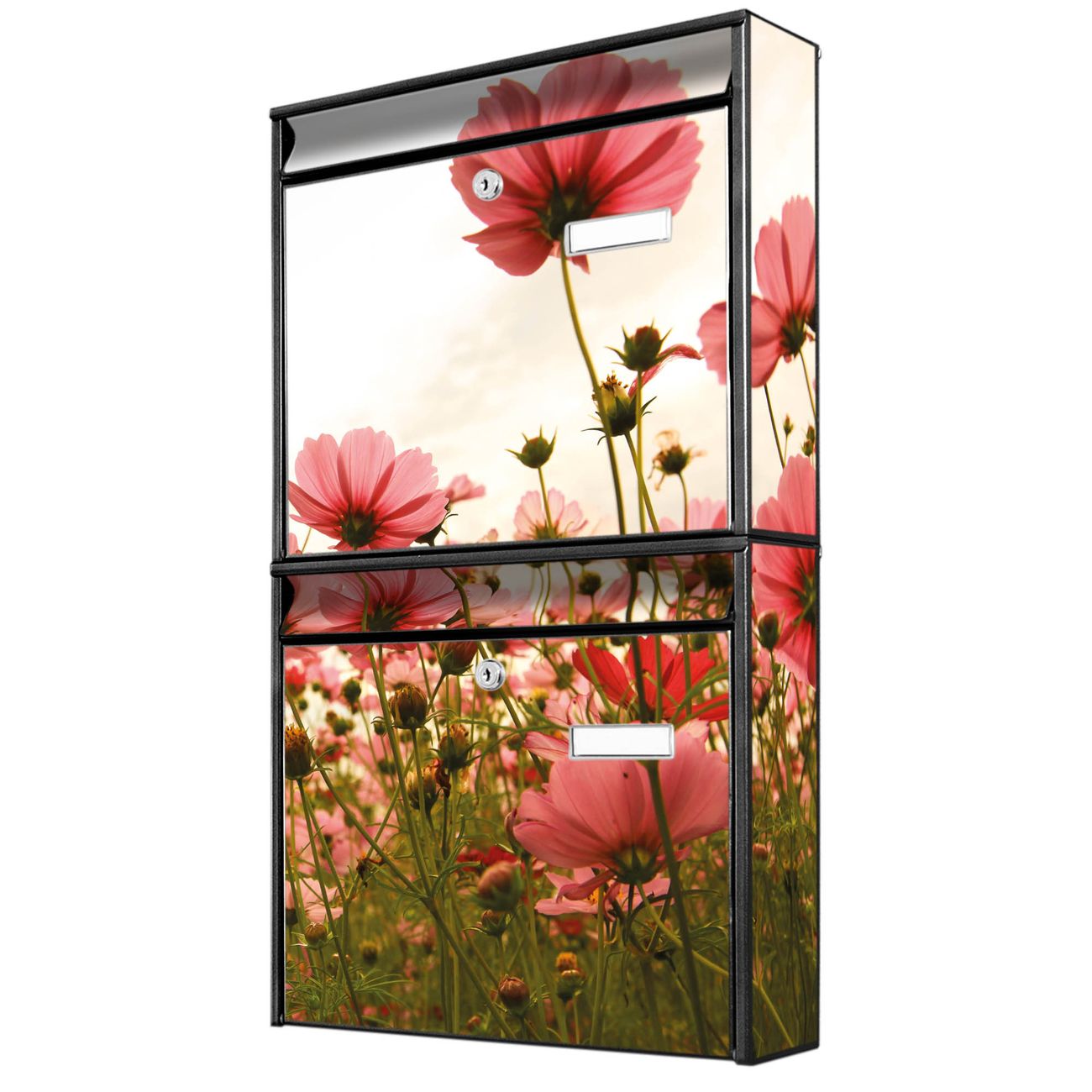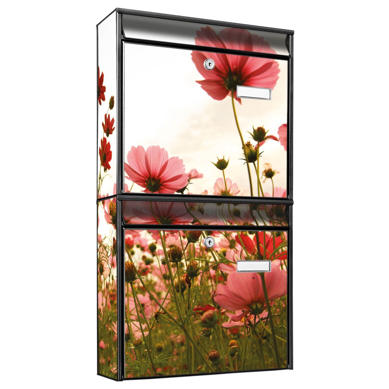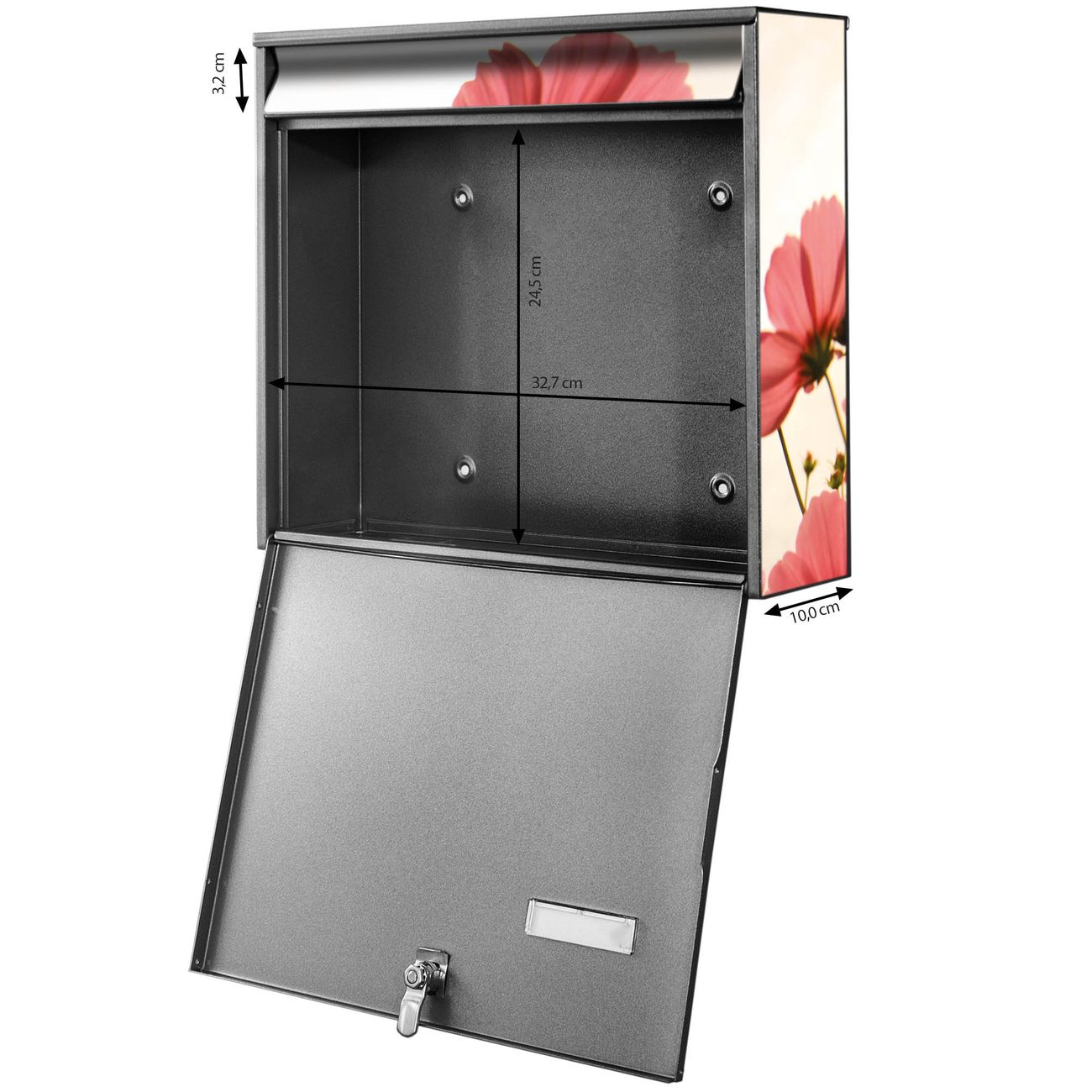 FUNKTION: Die Burg-Wächter Briefkastenanlage mit Motiv Schmuckkörbchen bietet Ihnen ausreichend Fassungsvermögen um auch A4 und C4 Sendungen zu empfangen. Das integrierte Namensschild lässt sich individuell beschriften. Wählen Sie aus den Grundfarben weiß, silber und schwarz. DESIGN: Die 2 Briefkästen haben ein ansprechendes und zeitloses Design, ohne dabei auf Funktionalität zu verzichten. Das Material ist sehr stabil, wetterfest und rostfrei. Durch das Motiv Schmuckkörbchen werden die Postkästen zu einem Blickfang. DETAILS: Die Postkästen bestehen aus verzinktem Stahl der zusätzlich mit Klarlack versiegelt wurde. Die Kästen sind gesamt 64,5cm hoch, 36,2cm breit und 10cm tief. Das Motiv besteht aus einer wetter- und UV-festen Folie, die Ihren Briefkasten zusätzlich vor Kratzern schützt. Die Postkästen werden mit Montagematerial, je einem Namensschild und je zwei Schlüsseln geliefert. NUTZEN: Das Briefkastenset eignet sich für die Wandmontage, die Größe bietet genügend Platz für Sendungen aller Art. Das zeitlose Design sowie die stabile Bauart bieten Ihnen einen treuen Begleiter für Ihre Post. BANJADO: