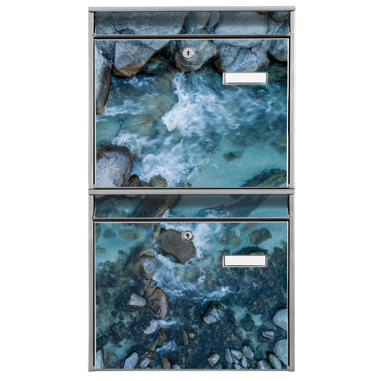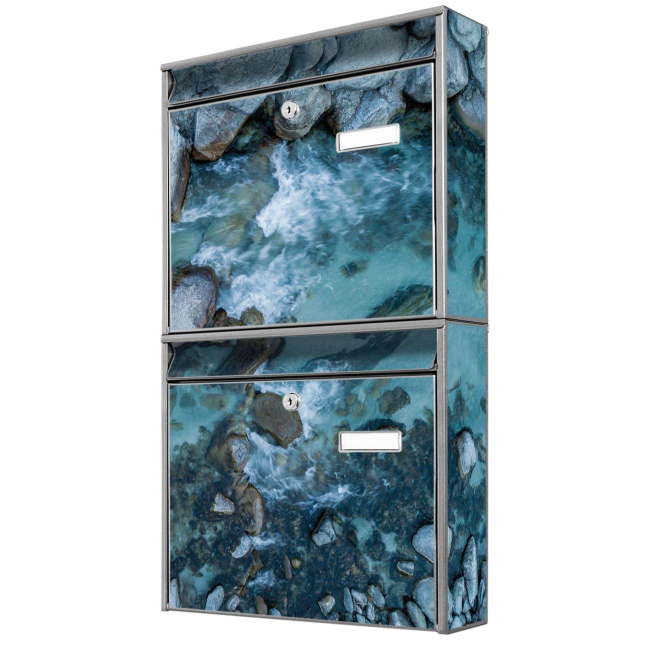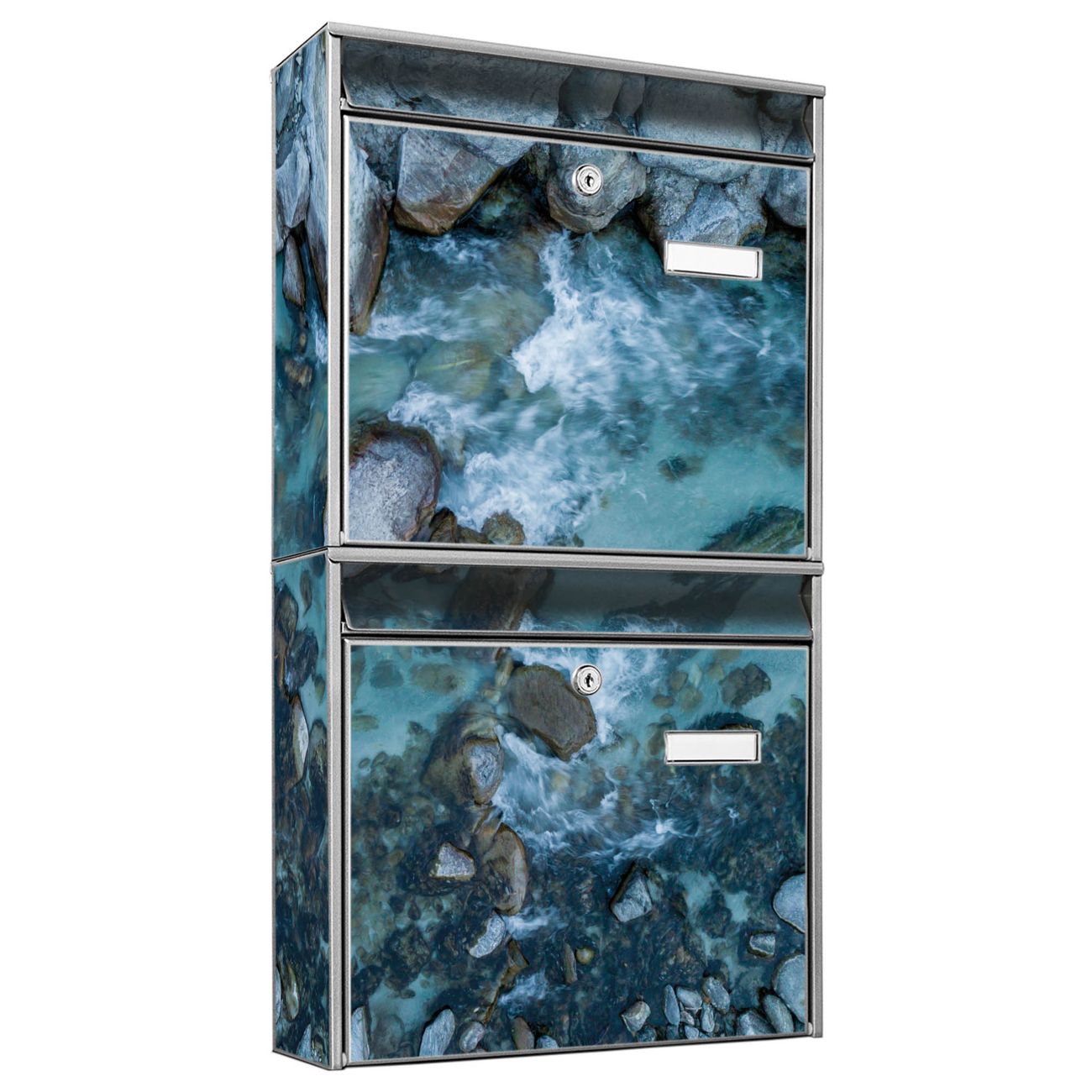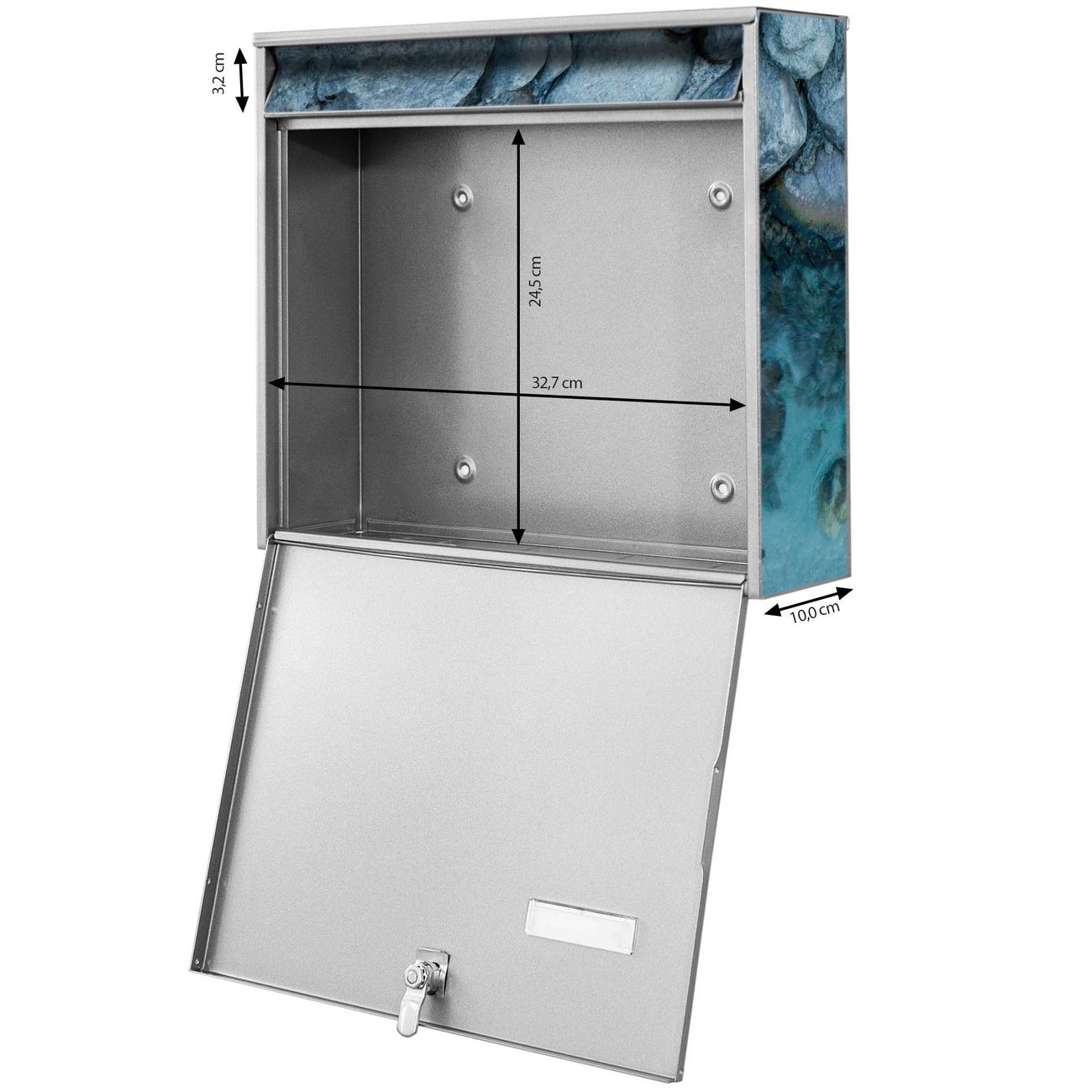 FUNKTION: Die Burg-Wächter Briefkastenanlage mit Motiv Steinbucht 2 bietet Ihnen ausreichend Fassungsvermögen um auch A4 und C4 Sendungen zu empfangen. Das integrierte Namensschild lässt sich individuell beschriften. Wählen Sie aus den Grundfarben weiß, silber und schwarz. DESIGN: Die 2 Briefkästen haben ein ansprechendes und zeitloses Design, ohne dabei auf Funktionalität zu verzichten. Das Material ist sehr stabil, wetterfest und rostfrei. Durch das Motiv Steinbucht 2 werden die Postkästen zu einem Blickfang. DETAILS: Die Postkästen bestehen aus verzinktem Stahl der zusätzlich mit Klarlack versiegelt wurde. Die Kästen sind gesamt 64,5cm hoch, 36,2cm breit und 10cm tief. Das Motiv besteht aus einer wetter- und UV-festen Folie, die Ihren Briefkasten zusätzlich vor Kratzern schützt. Die Postkästen werden mit Montagematerial, je einem Namensschild und je zwei Schlüsseln geliefert. NUTZEN: Das Briefkastenset eignet sich für die Wandmontage, die Größe bietet genügend Platz für Sendungen aller Art. Das zeitlose Design sowie die stabile Bauart bieten Ihnen einen treuen Begleiter für Ihre Post. BANJADO: