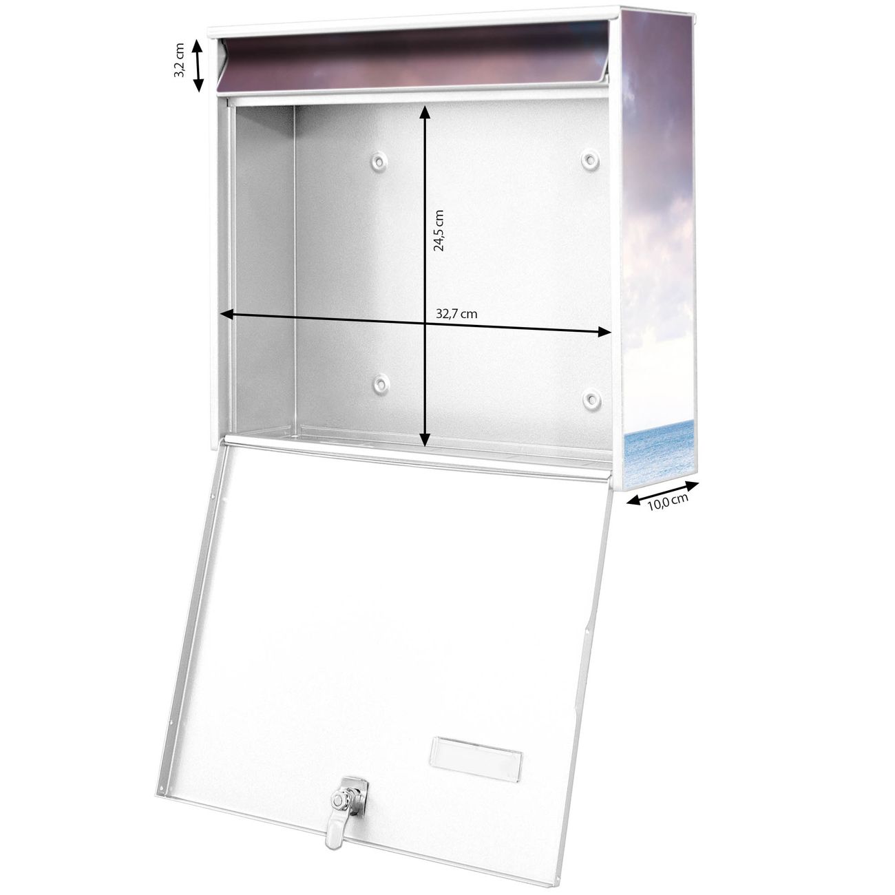 - je Briefschlitz: 34,5 x 3,8cm (B x H)