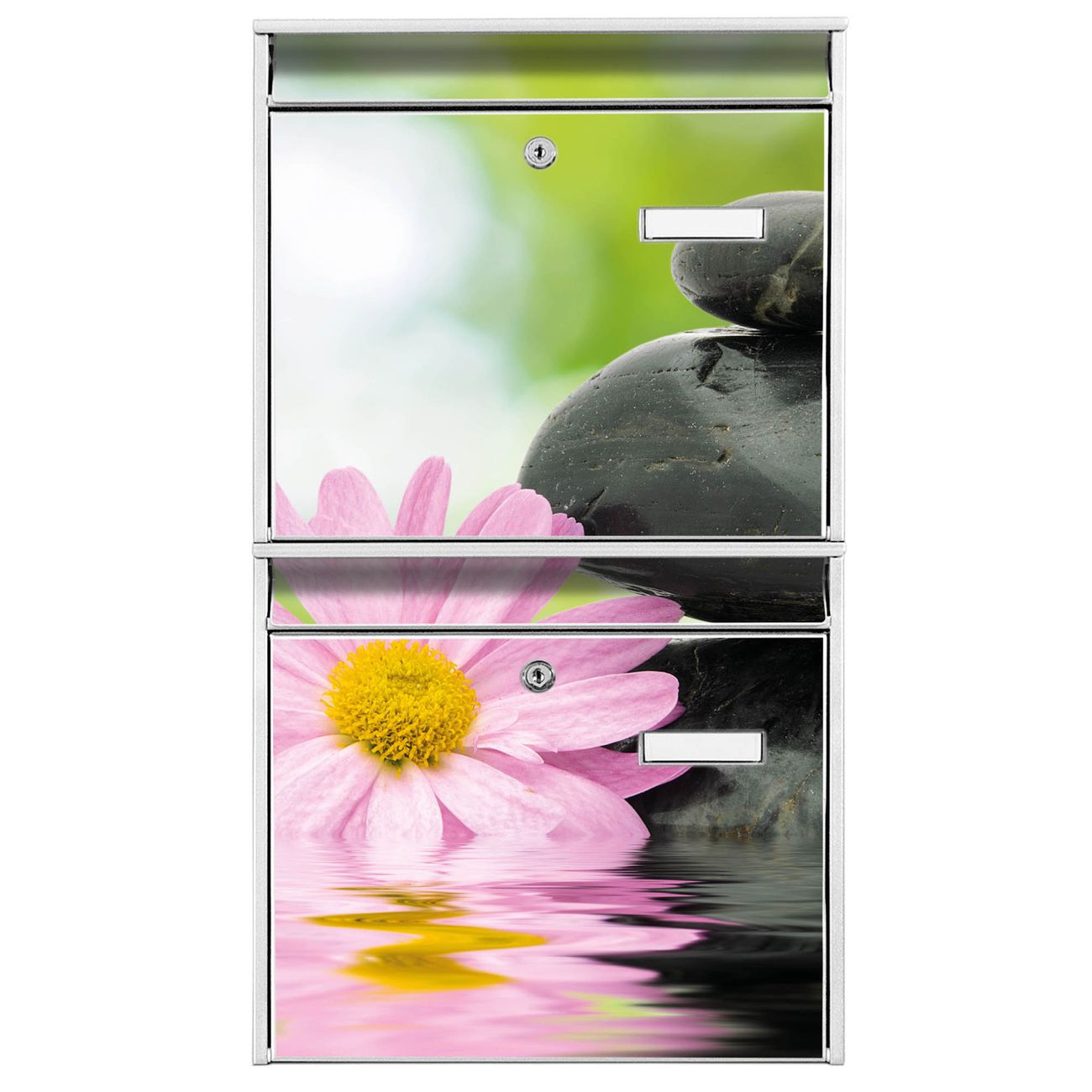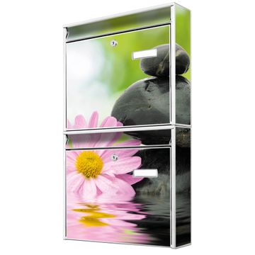 FUNKTION: Die Burg-Wächter Briefkastenanlage mit Motiv Steine & Relax 2 bietet Ihnen ausreichend Fassungsvermögen um auch A4 und C4 Sendungen zu empfangen. Das integrierte Namensschild lässt sich individuell beschriften. Wählen Sie aus den Grundfarben weiß, silber und schwarz. DESIGN: Die 2 Briefkästen haben ein ansprechendes und zeitloses Design, ohne dabei auf Funktionalität zu verzichten. Das Material ist sehr stabil, wetterfest und rostfrei. Durch das Motiv Steine & Relax 2 werden die Postkästen zu einem Blickfang. DETAILS: Die Postkästen bestehen aus verzinktem Stahl der zusätzlich mit Klarlack versiegelt wurde. Die Kästen sind gesamt 64,5cm hoch, 36,2cm breit und 10cm tief. Das Motiv besteht aus einer wetter- und UV-festen Folie, die Ihren Briefkasten zusätzlich vor Kratzern schützt. Die Postkästen werden mit Montagematerial, je einem Namensschild und je zwei Schlüsseln geliefert. NUTZEN: Das Briefkastenset eignet sich für die Wandmontage, die Größe bietet genügend Platz für Sendungen aller Art. Das zeitlose Design sowie die stabile Bauart bieten Ihnen einen treuen Begleiter für Ihre Post. BANJADO: